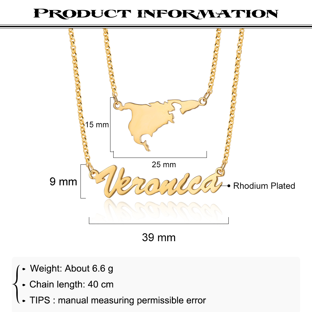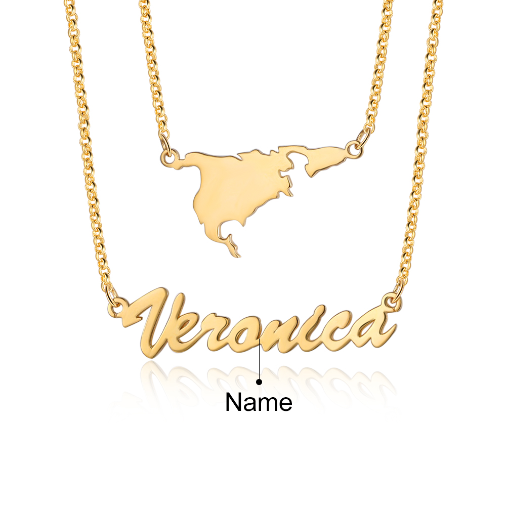 Personalised Map Necklace Custom 1 Name Necklace Gift For Women