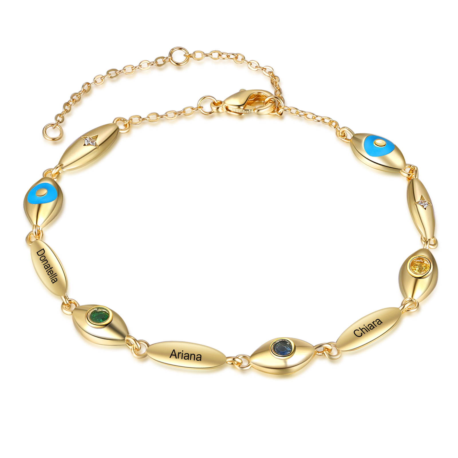 Personalised Demon Eye Bracelet With 3 Birthstones Engraved Name Bracelet Gifts For Her
