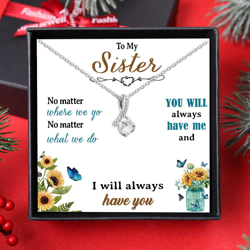 To My Sister Necklace Set-S925 Sterling Silver Necklace with Gift Card Gift Box Set-Best Gift For Sister