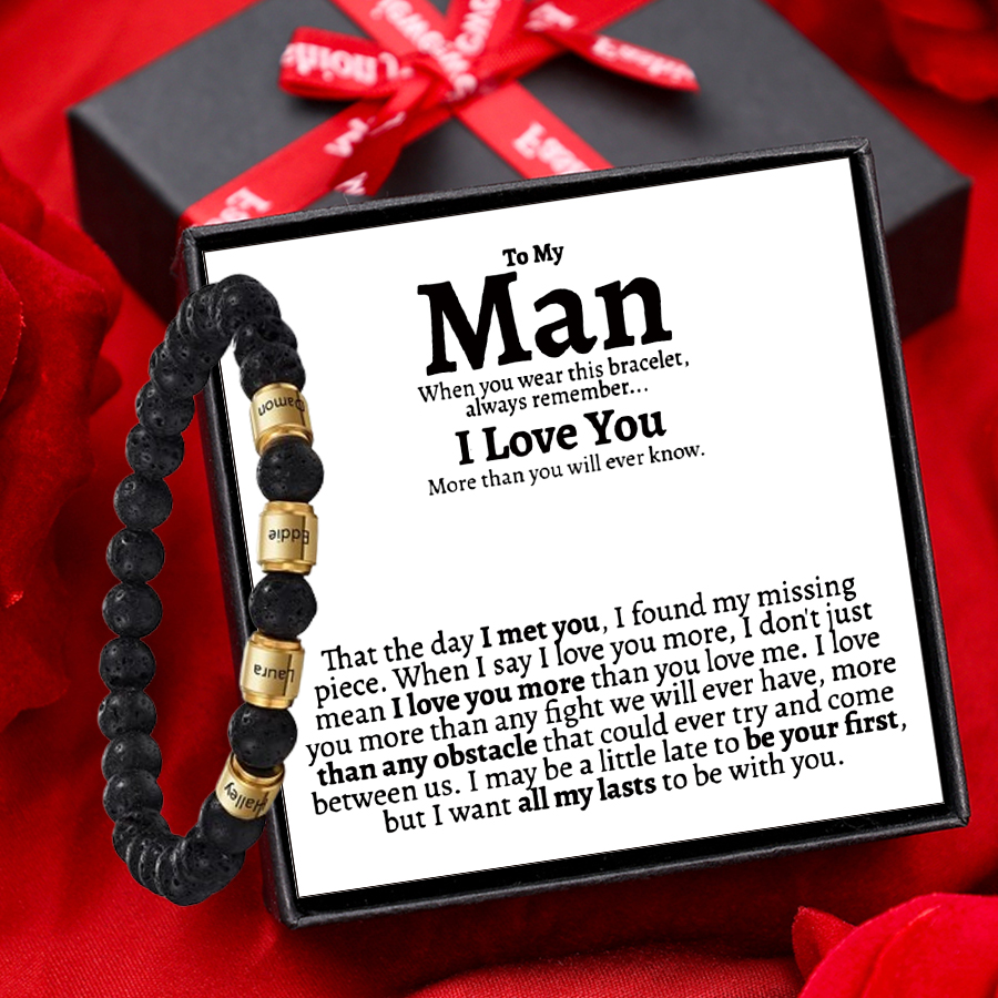 4 Names-Personalised To My Man Bracelet Set With Gift Card Gift Box-Custom Men's Bracelet Engraved Names Personalised Gift for Him