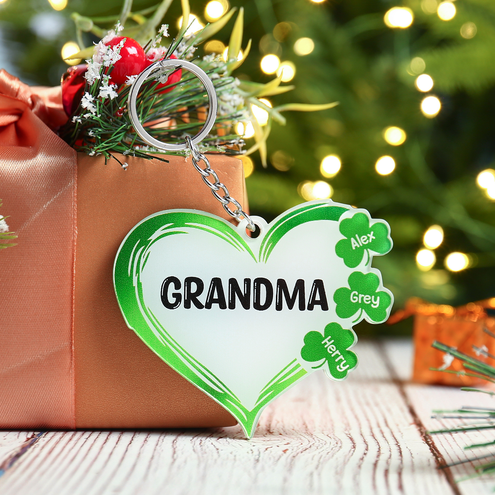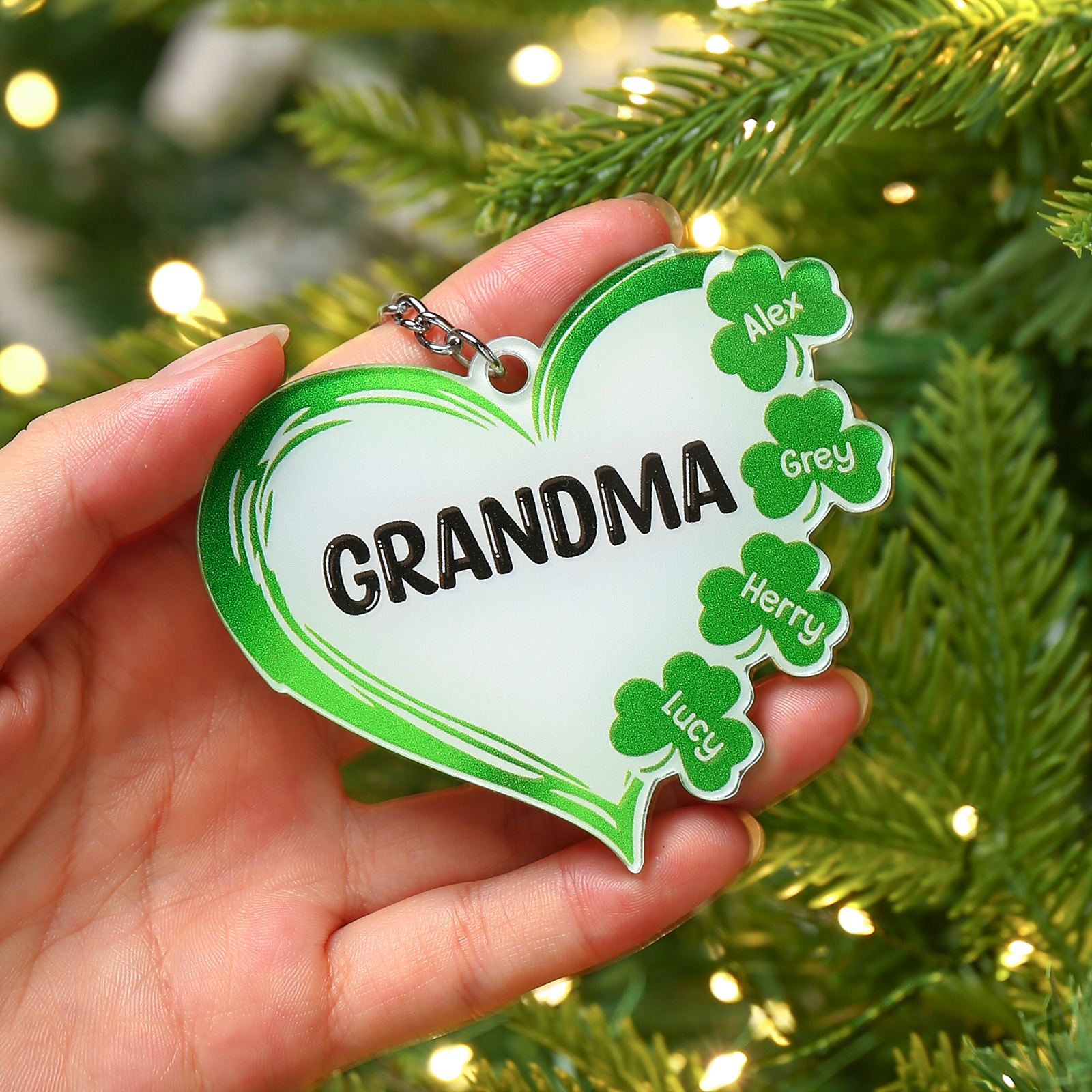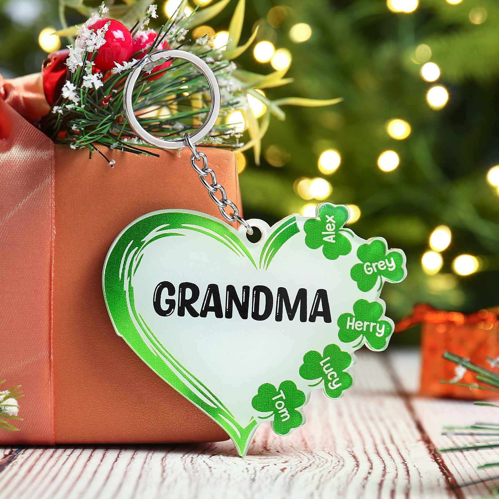 3 Names-Personalised Acrylic Family Hearts And Four-leaf Clover Keyring-Custom Special Names And Text Keyring Gift For Family