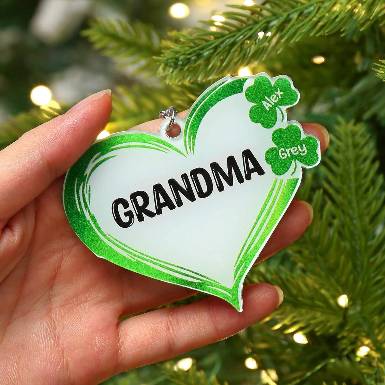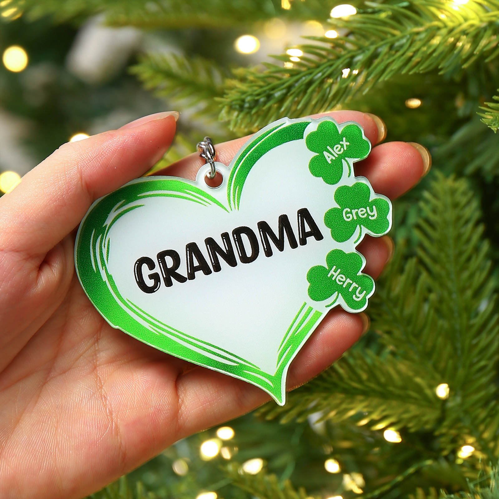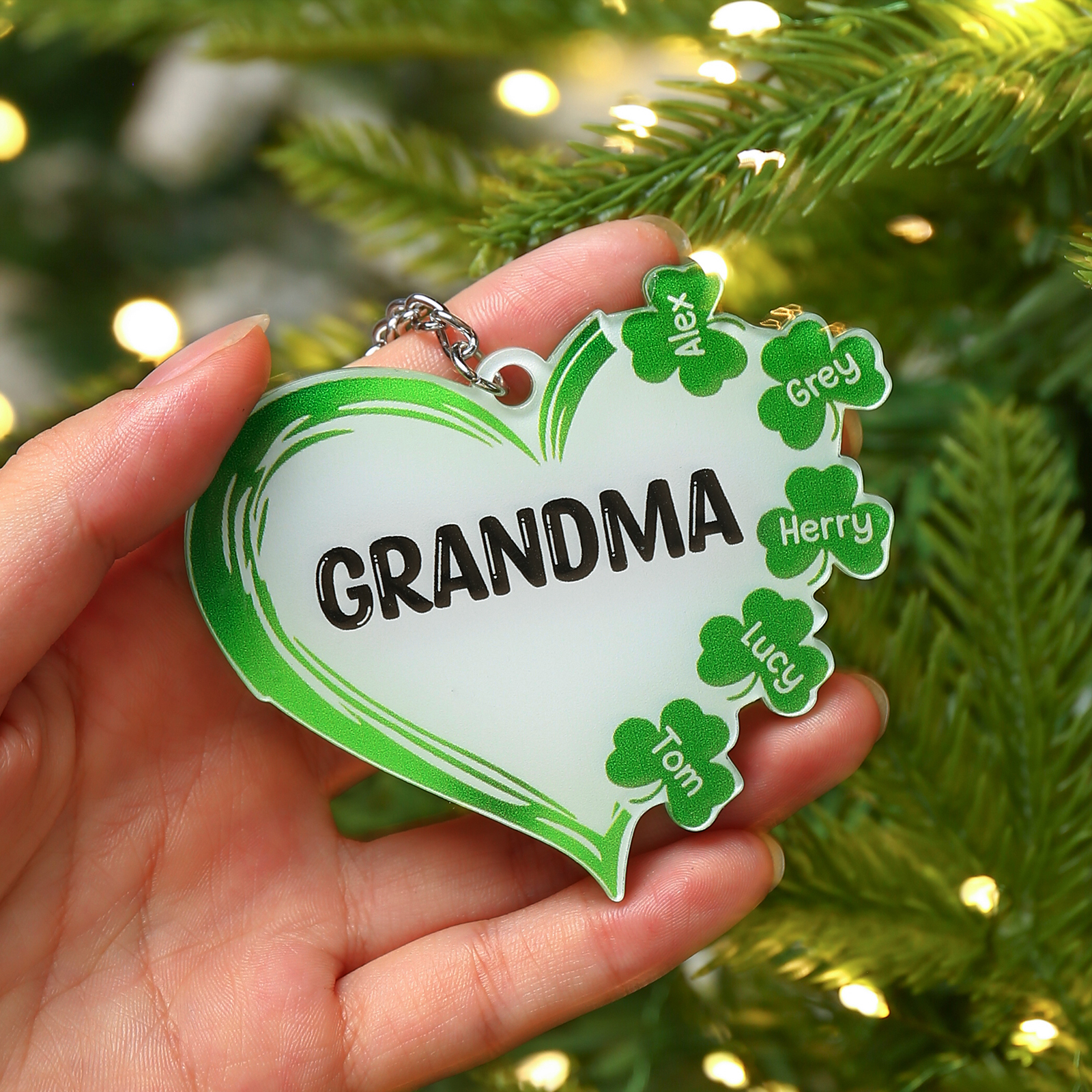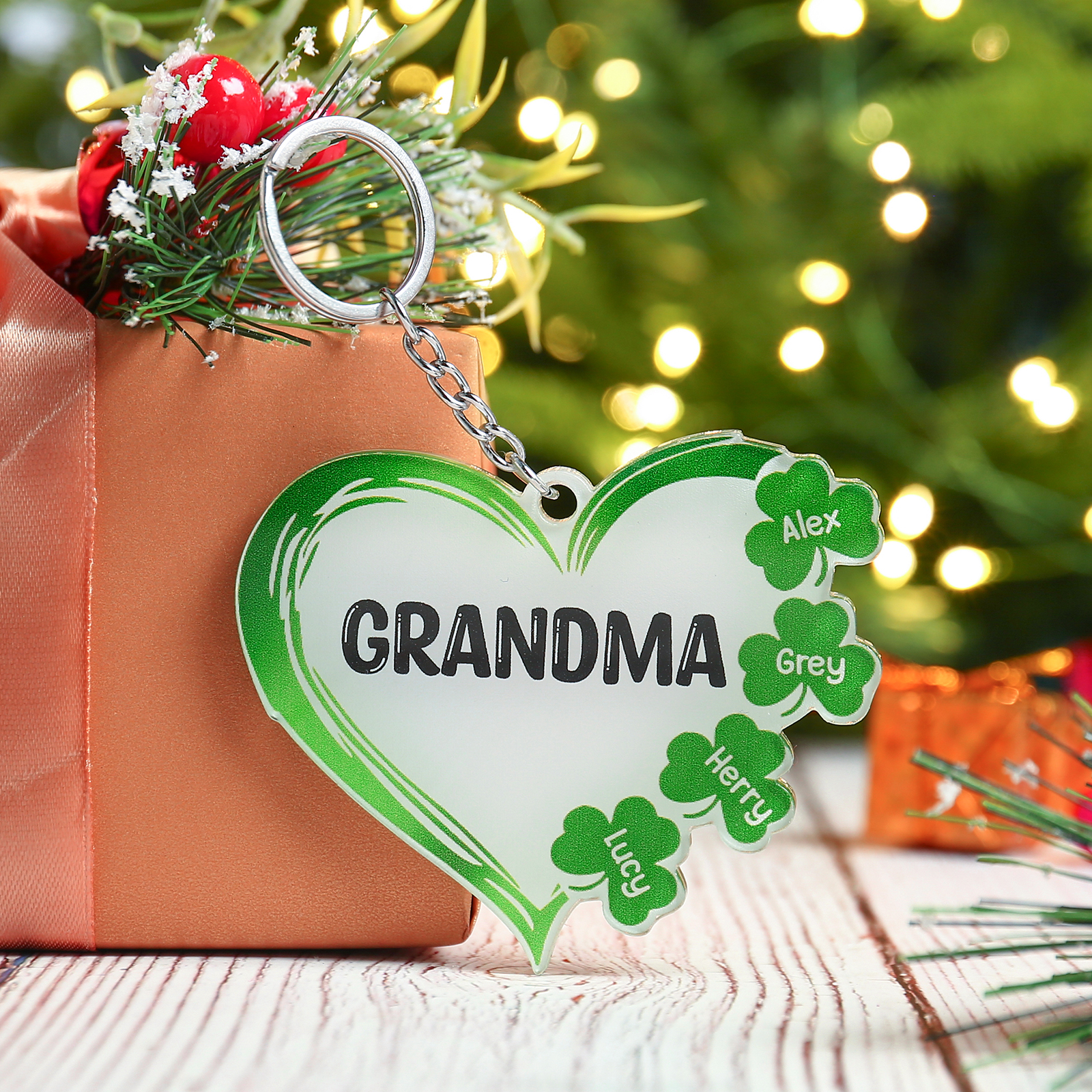 3 Names-Personalised Acrylic Family Hearts And Four-leaf Clover Keyring-Custom Special Names And Text Keyring Gift For Family