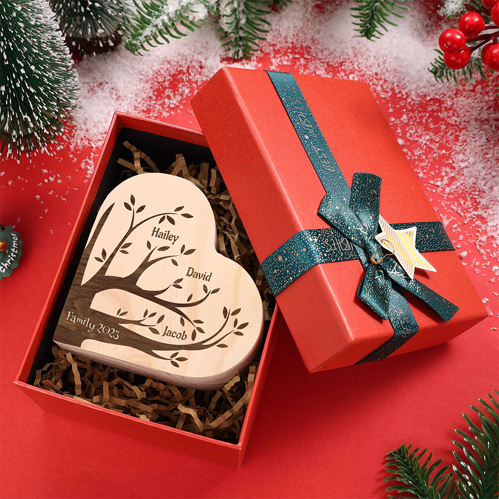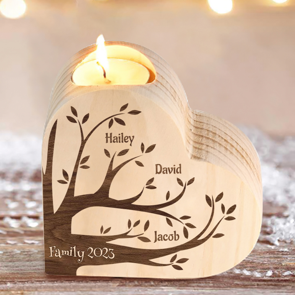 3 Names-Custom Family Tree Wooden Candlestick-Personalised Names Heart Candle Holder Christmas Gift for Family