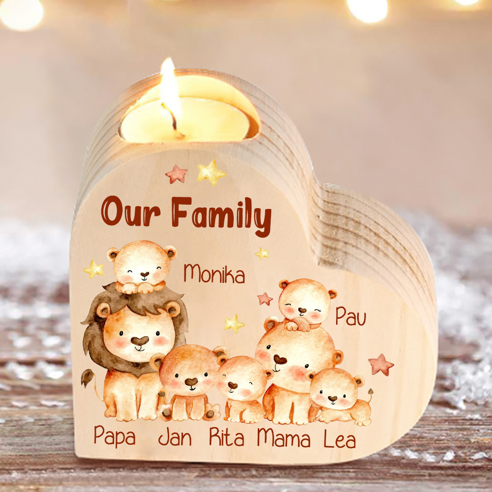 6 Names-Custom Family Lions Wooden Candlestick-Personalised Names Heart Candle Holder Christmas Gift for Family