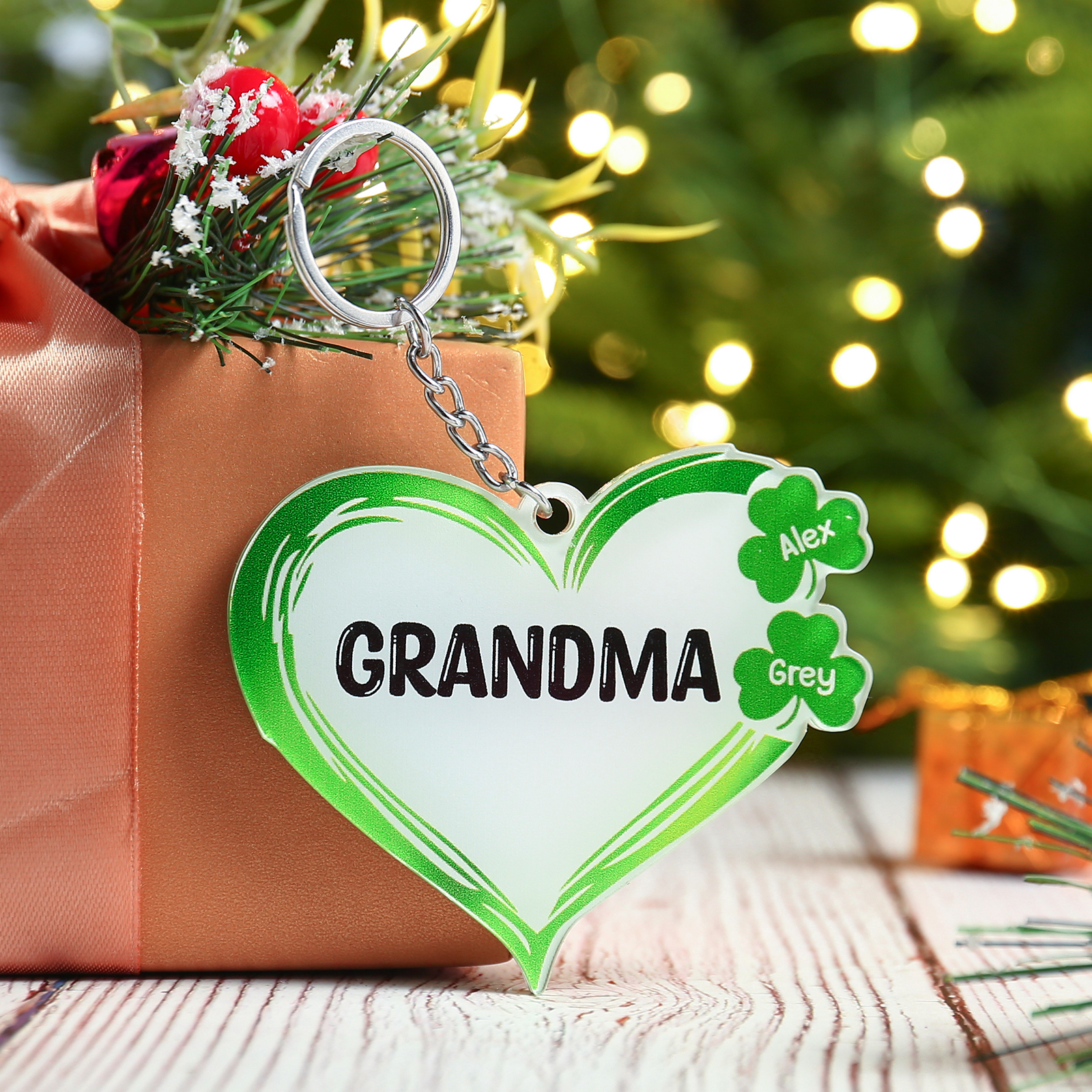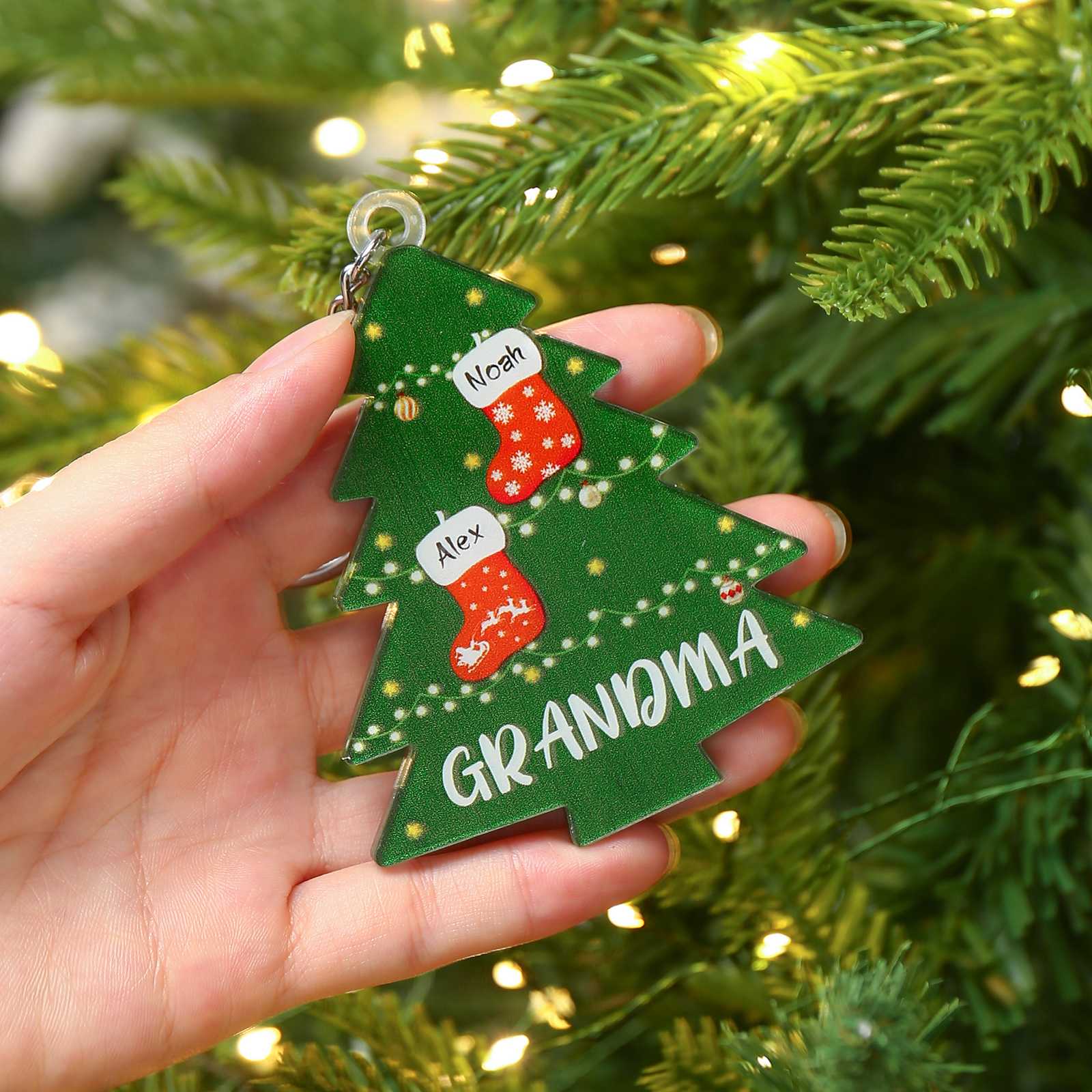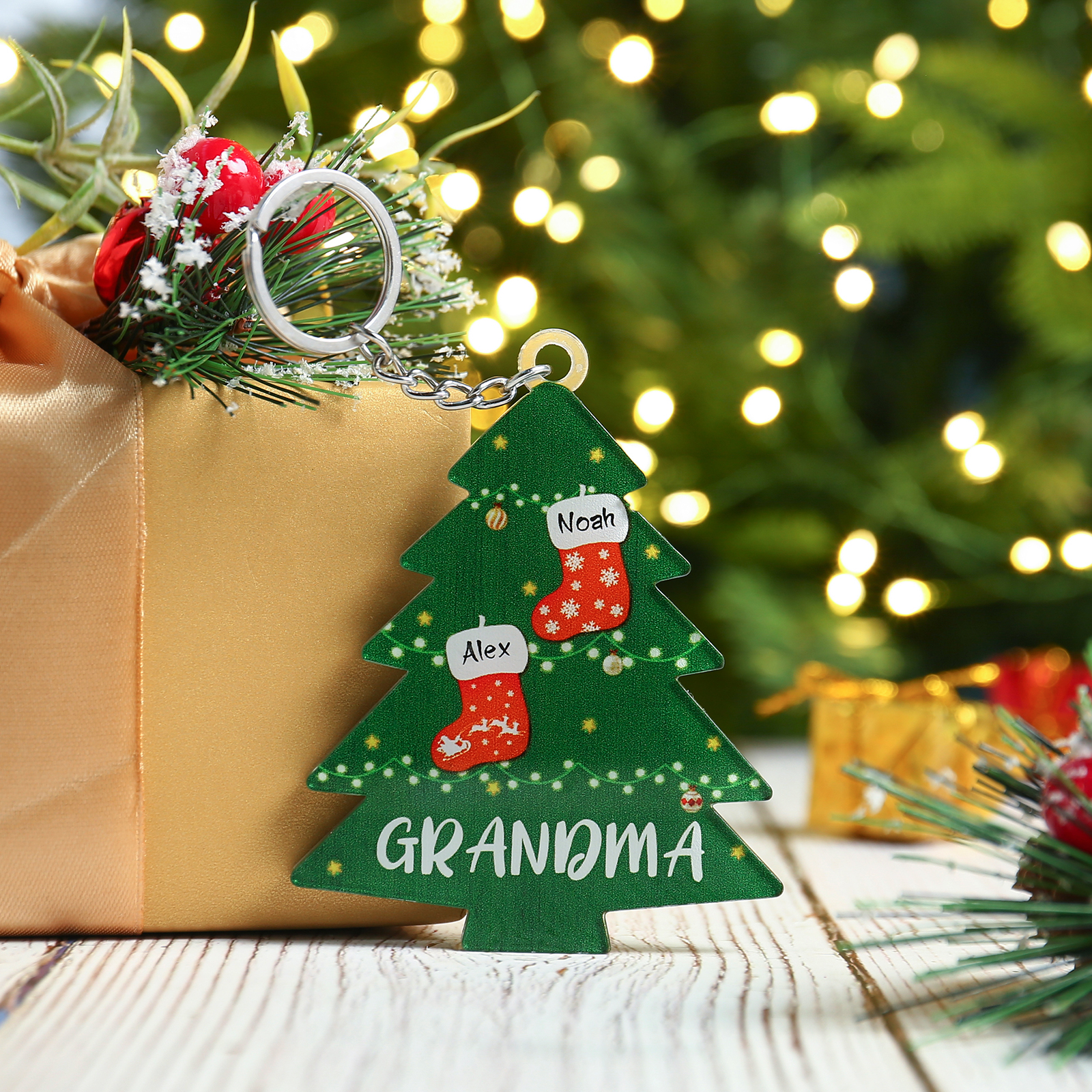 2 Names-Personalised Acrylic Family Christmas Tree Keyring-Custom Special Names And Text Keyring Gift For Family
