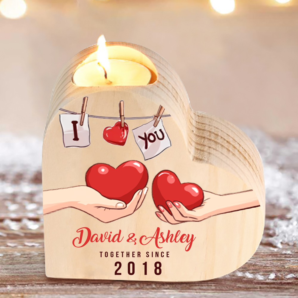 Personalised Name Love Couple Heart Candle Holder Engrave Year Wooden Candlesticks Valentines Gift
