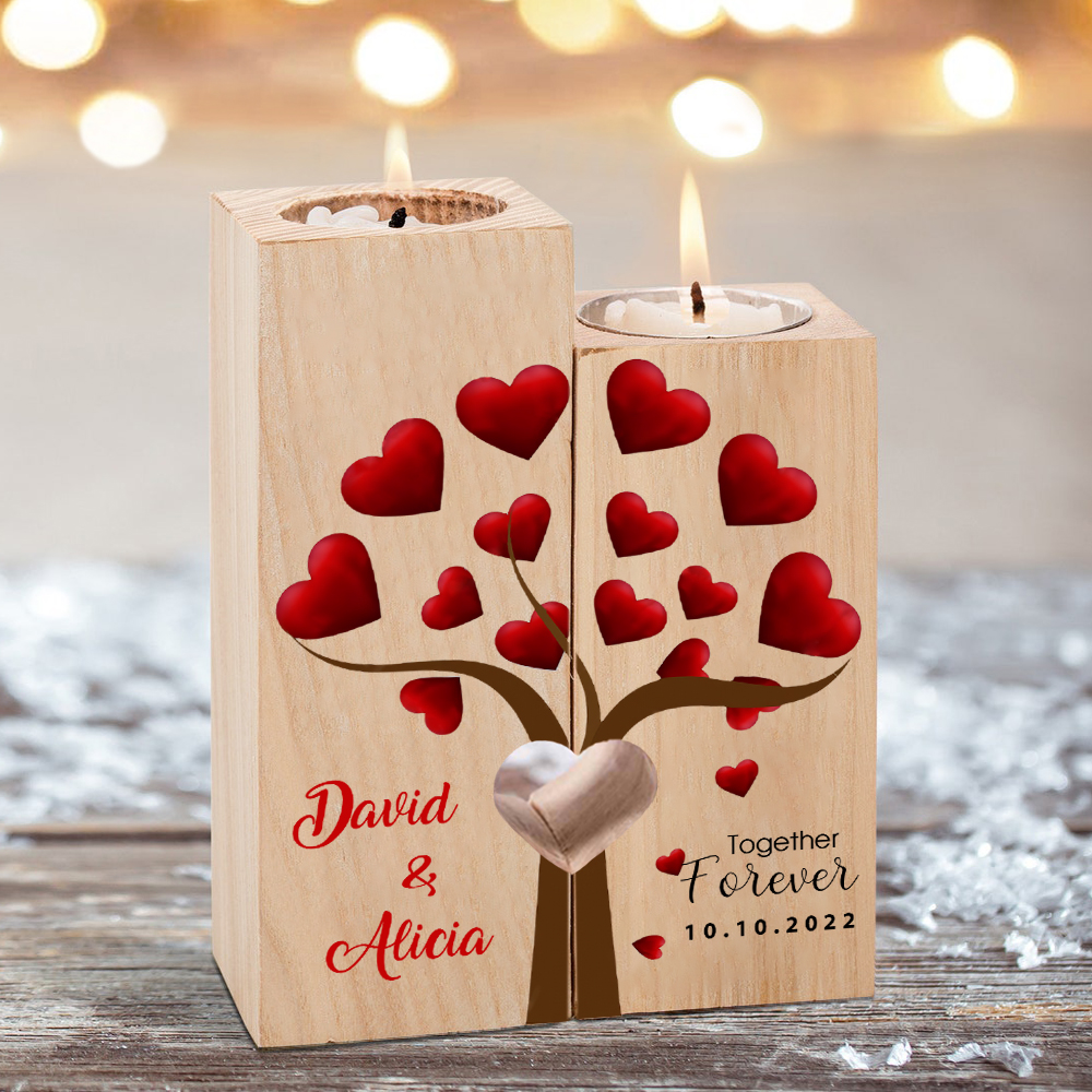 Personalised Beautiful Heart Tree Name Couple Wooden Candlesticks Custom Candle Holder For Him/Her