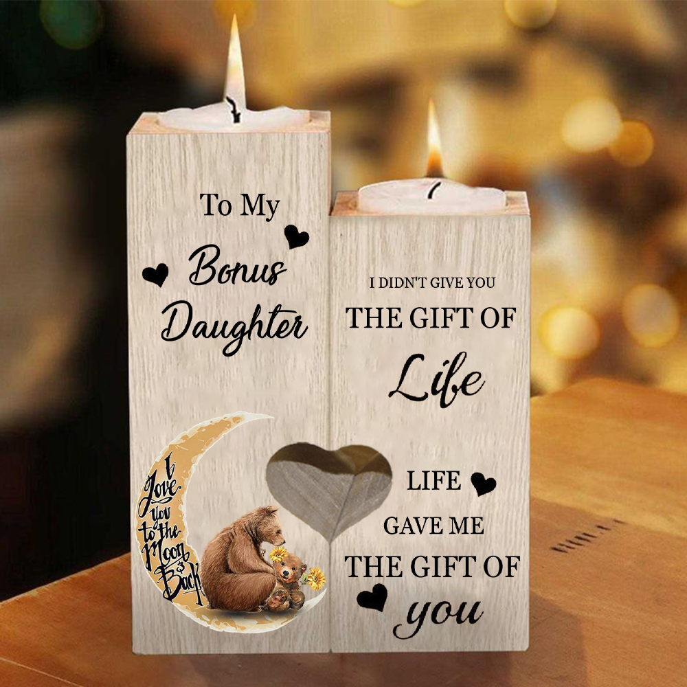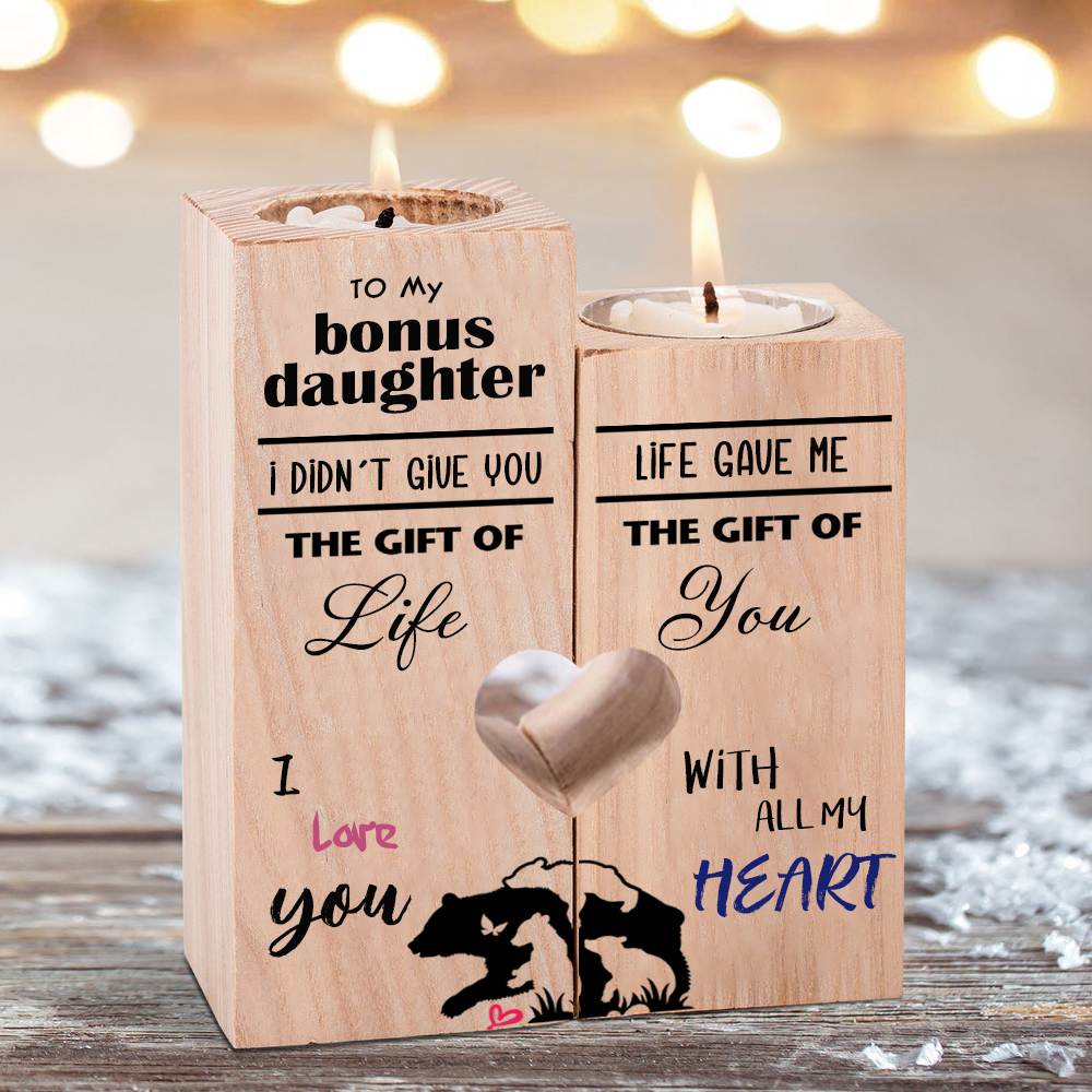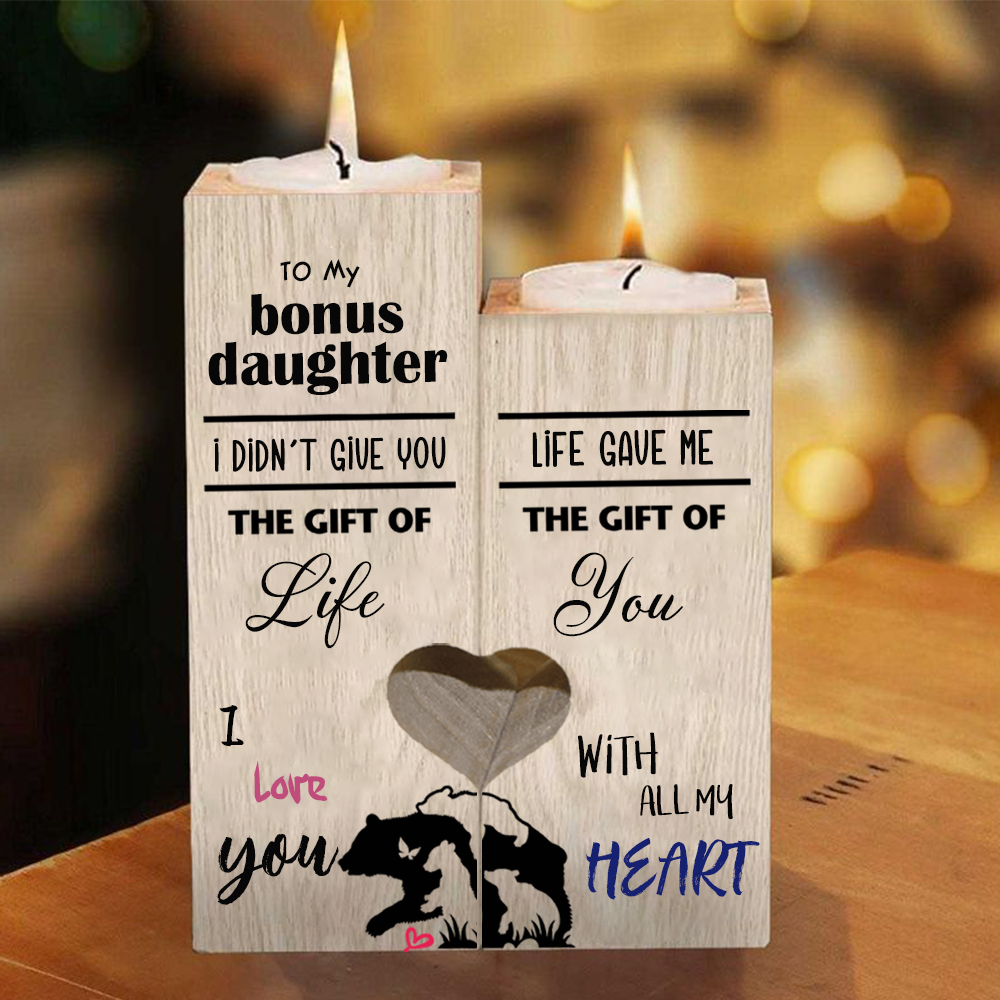 To My Bonus Daughter Wooden Candle Holder "Life Gave Me The Gift of You"