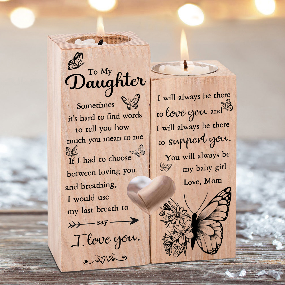 To My Daughter Candle Holder "You Will Always Be My Baby Girl" Wooden Candlestick