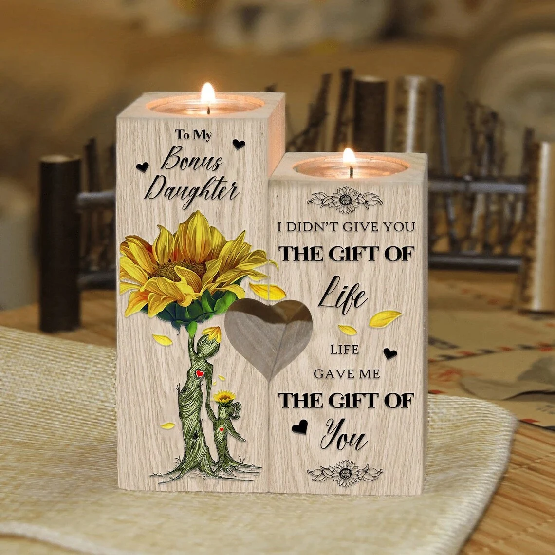 To My Bonus Daughter Wooden Candle Holder "Life Gave Me The Gift of You" Sunflower Candlesticks