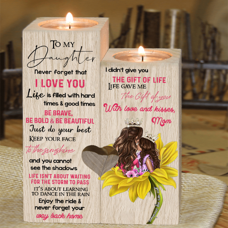 To My Daughter Candle Holder Life gave me the gift of you with love & kisses Wooden Candlestick