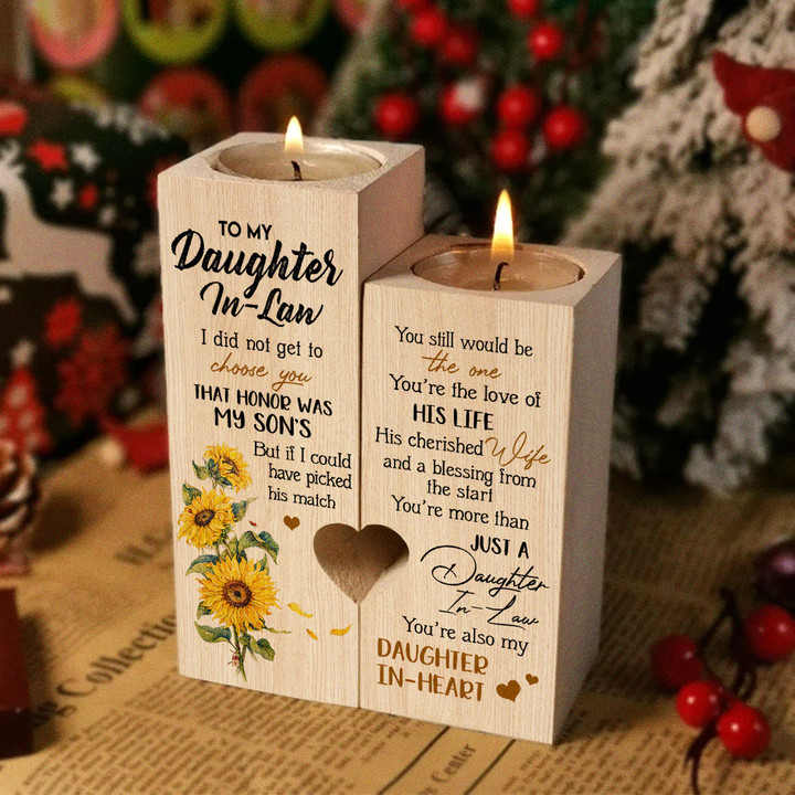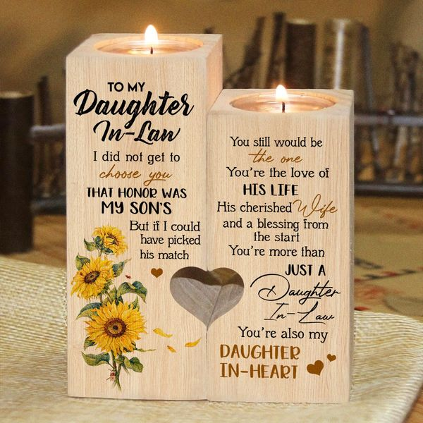 To My Daughter-In-Law Candle Holder You’re also my daughter-in-heart Wooden Candlestick