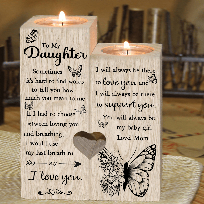 To My Daughter Wooden Candle Holder Never Forget That I Love You Butterfly Candlesticks