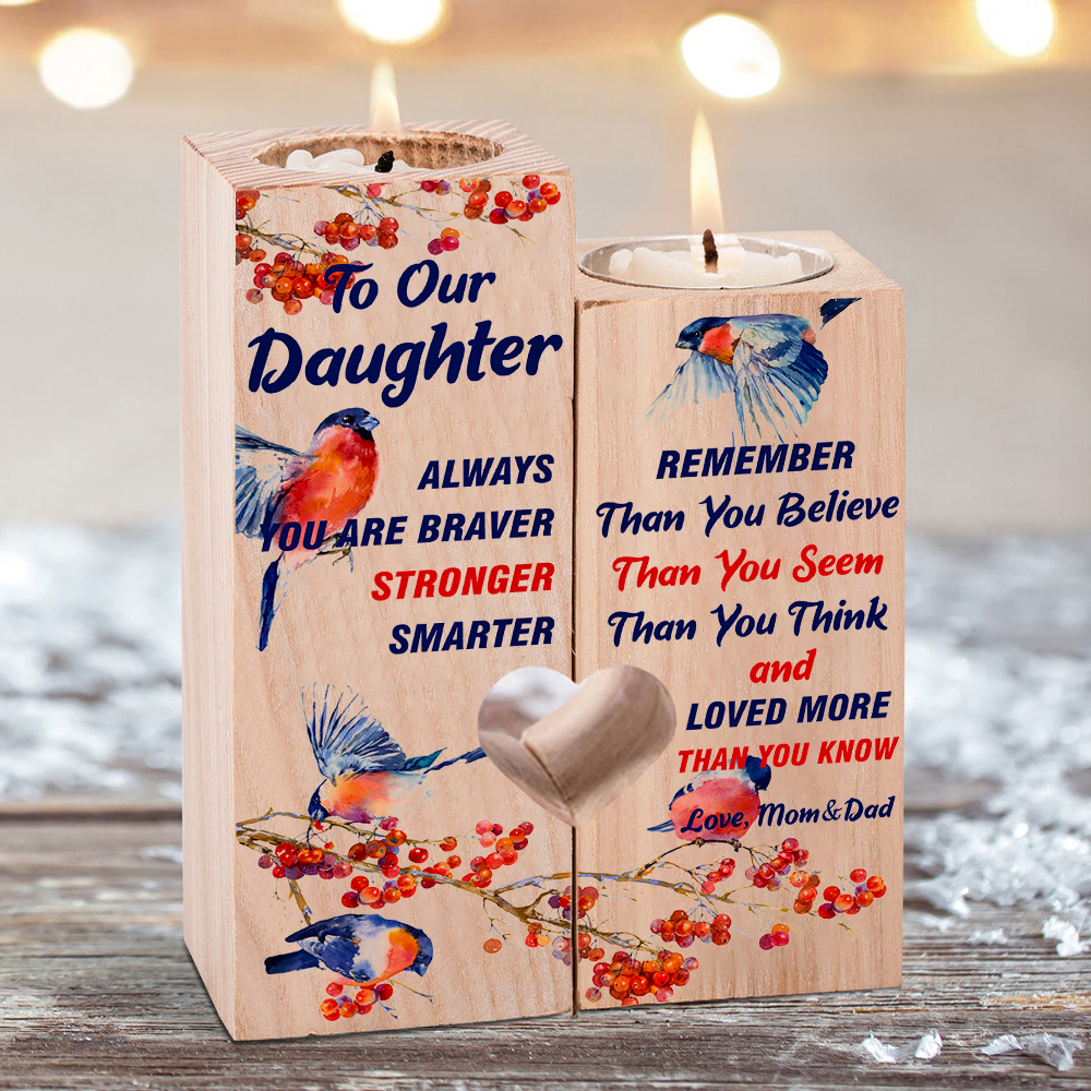 To My Daughter Wooden Candle Holder Loved More Than You Know Bird Candlesticks