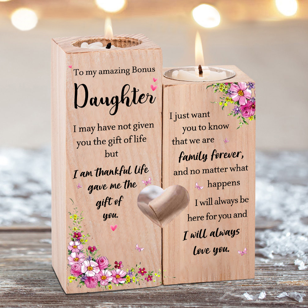 To My Amazing Bonus Daughter Flower Candle Holder "I am thankful life gave me the gift of you" Wooden Candlestick