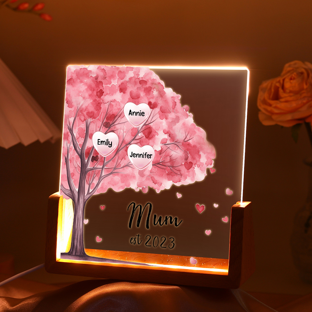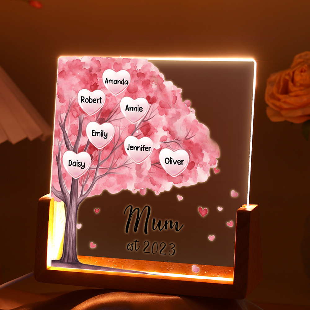 8 Names - Personalised Sakura Tree Night Light with Custom Text And Date LED Light, Gift for Mum
