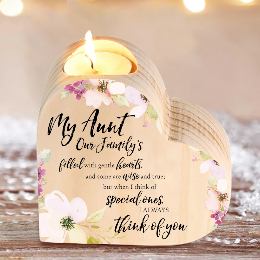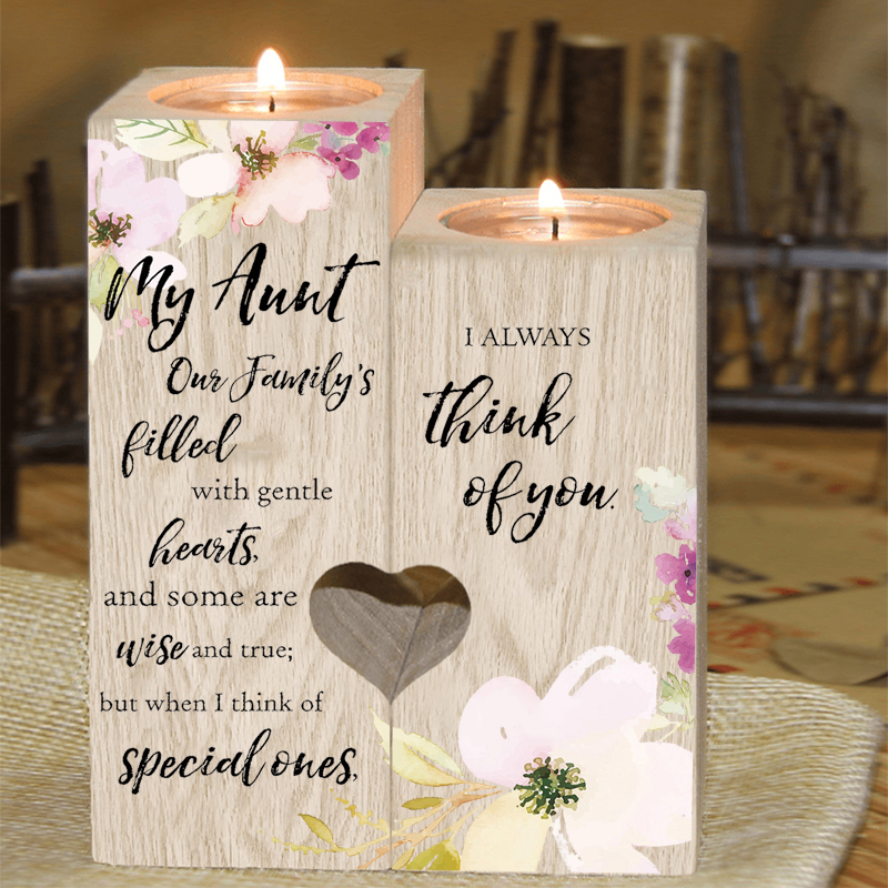 To My Aunt Flower Candlesticks-I Always Think of You-Heart Wooden Candle Holder for Auntie