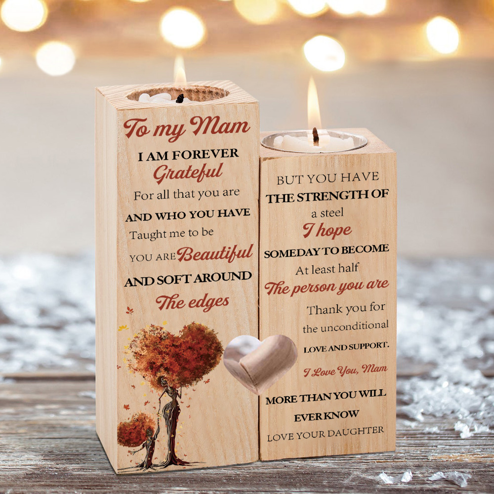 To My Mam Candlesticks-I Love You-Wooden Candle Holder For Mam