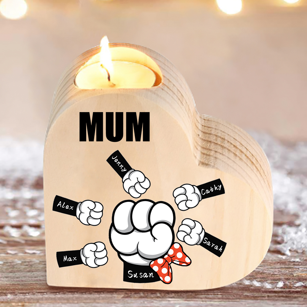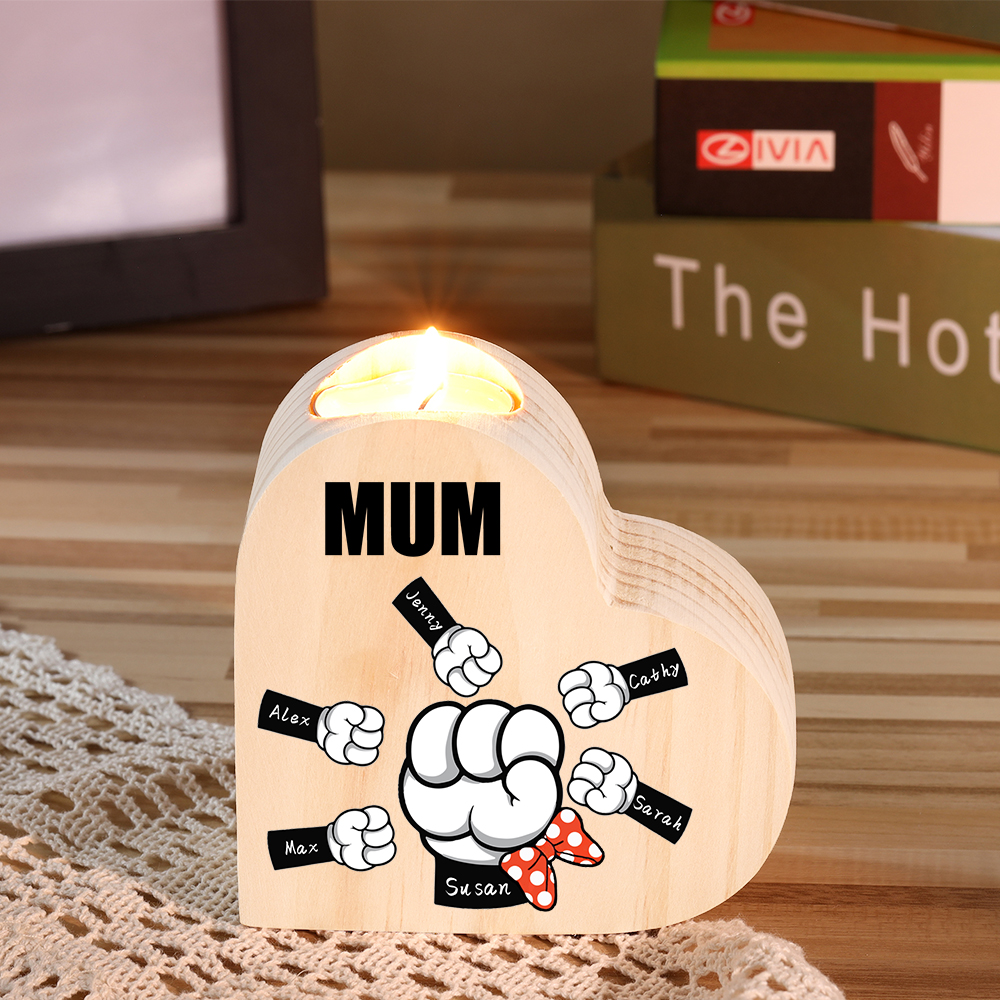 6 Names-Personalised Fist Bump Heart-Shape Candlestick Custom Text Mother's Day Gift Wooden Custom Candle Holder For Mum