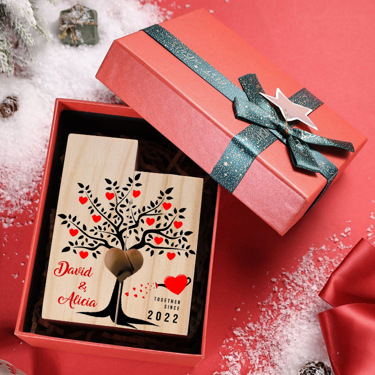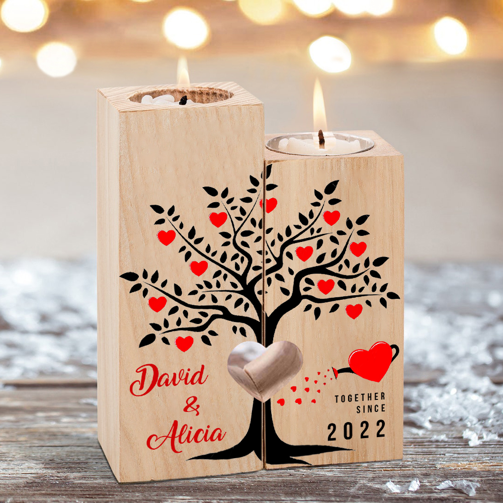 Personalised Beautiful Heart Tree Name Couple Wooden Candlesticks Custom Candle Holder For Him/Her