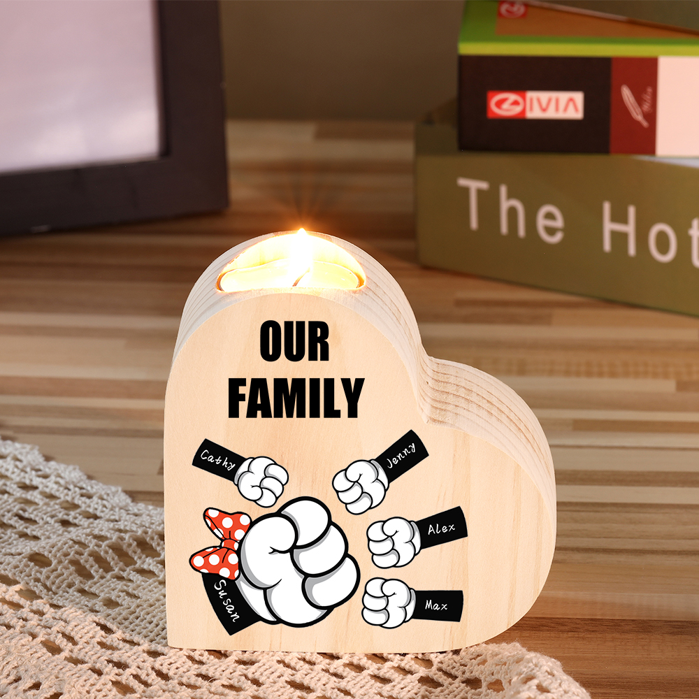4 Names-Personalised Fist Bump Heart-Shape Candlestick Custom Text Mother's Day Gift Wooden Custom Candle Holder For Mum