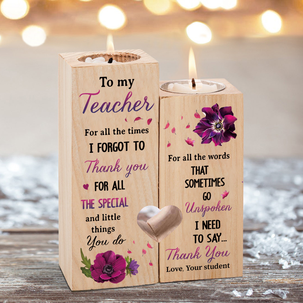 To My Teacher Violet Candlesticks-I Need To Say I Love You/Thank You-Wooden Custom Candle Holder For Teacher