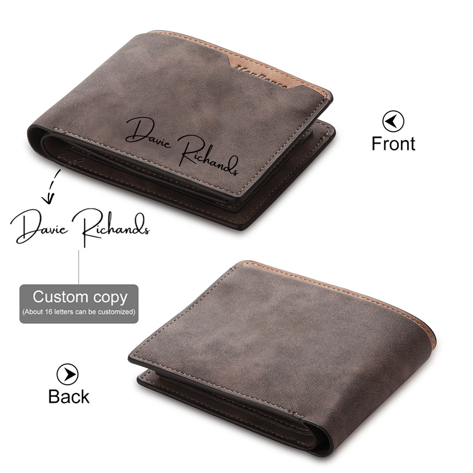 Personalised Name Leather Wallet Engraved Short Wallet Folding Wallet Gifts For Men