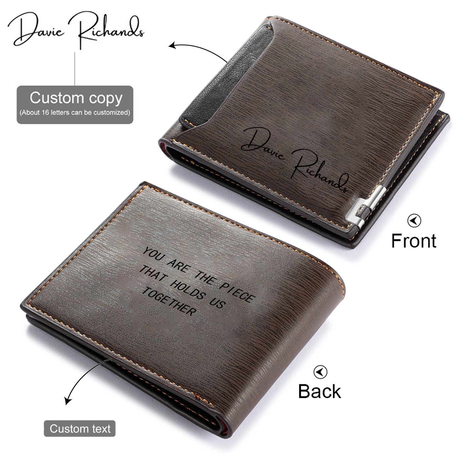 Personalised Text Leather Wallet Engraved Short Wallet Folding Wallet Gifts For Men