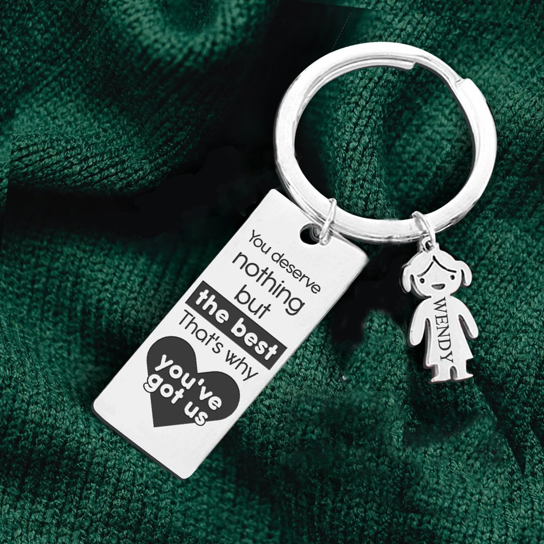 Personalized Keyring with Kid Charm Engraved 4 Names Family Keyring for Him
