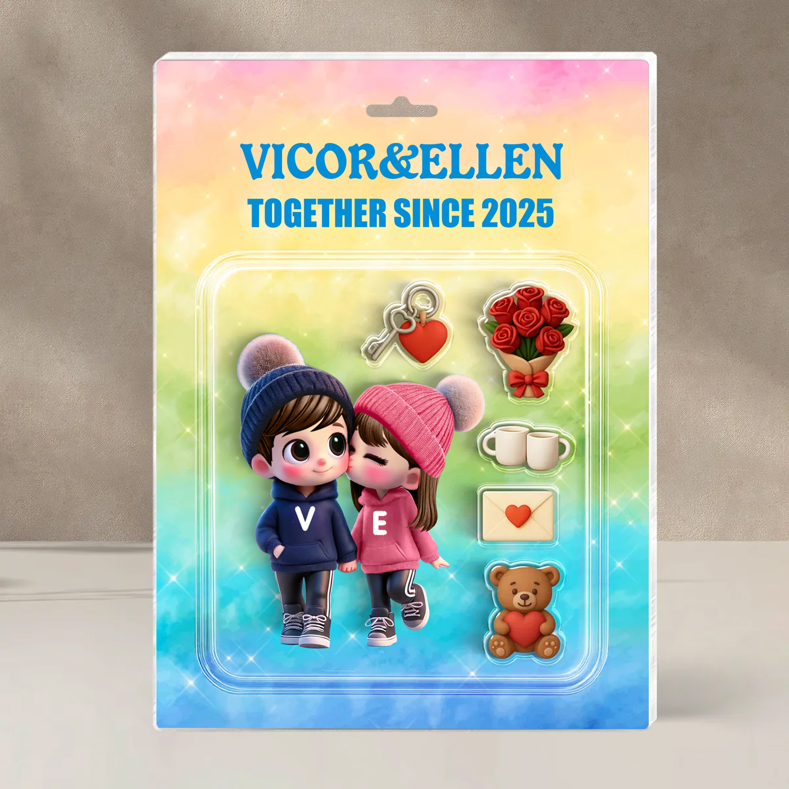 2 Names-Personalised Couple Acrylic Ornament-Custom Acrylic Heart Keepsake Desktop Ornament for Couple