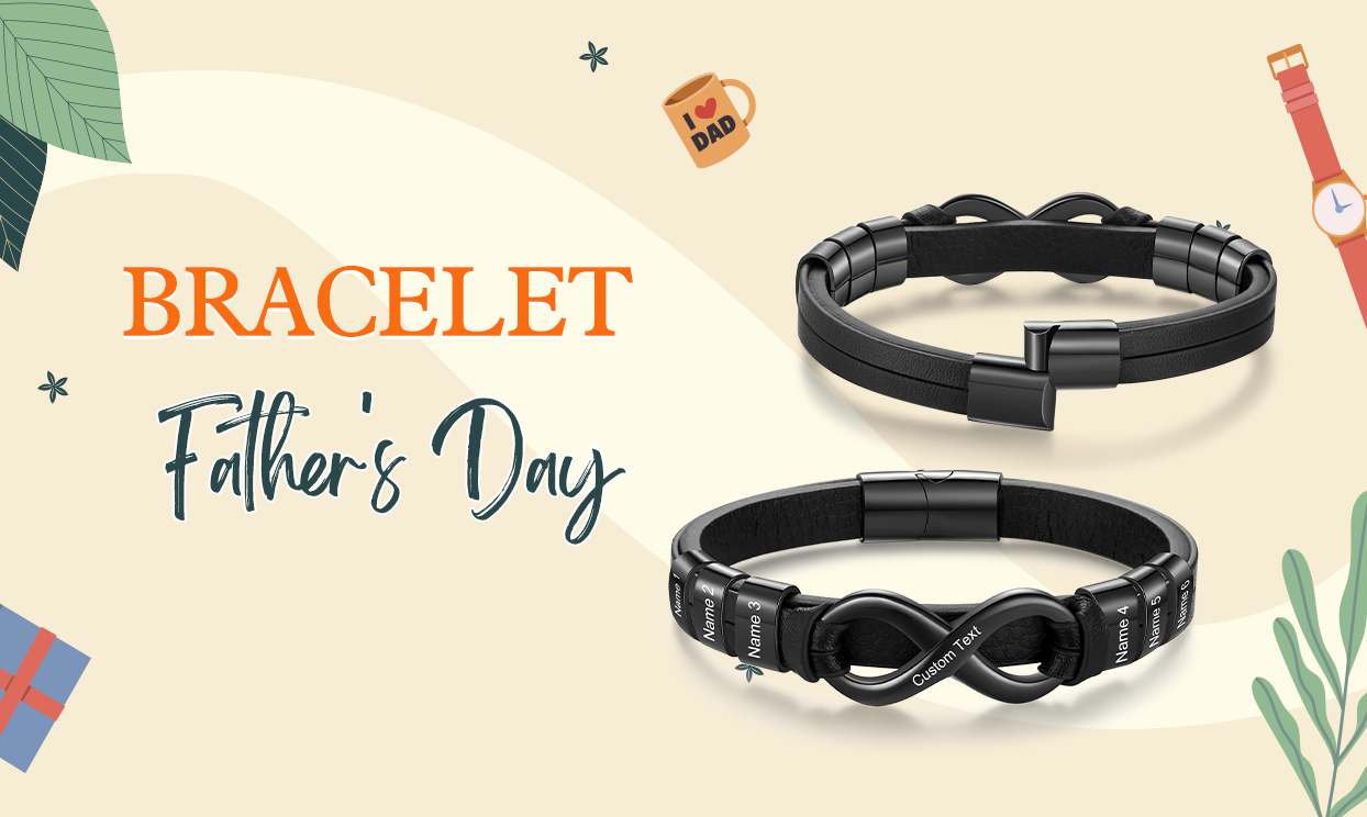 Giving a personalised bracelet for Father's Day is a symbol of the unique bond between father and child. Available in leather, stainless steel, or fabric, with engraved names or a significant date, each design tells a story. It's a touching and always fashionable gift idea that shows he's a dad like no other.