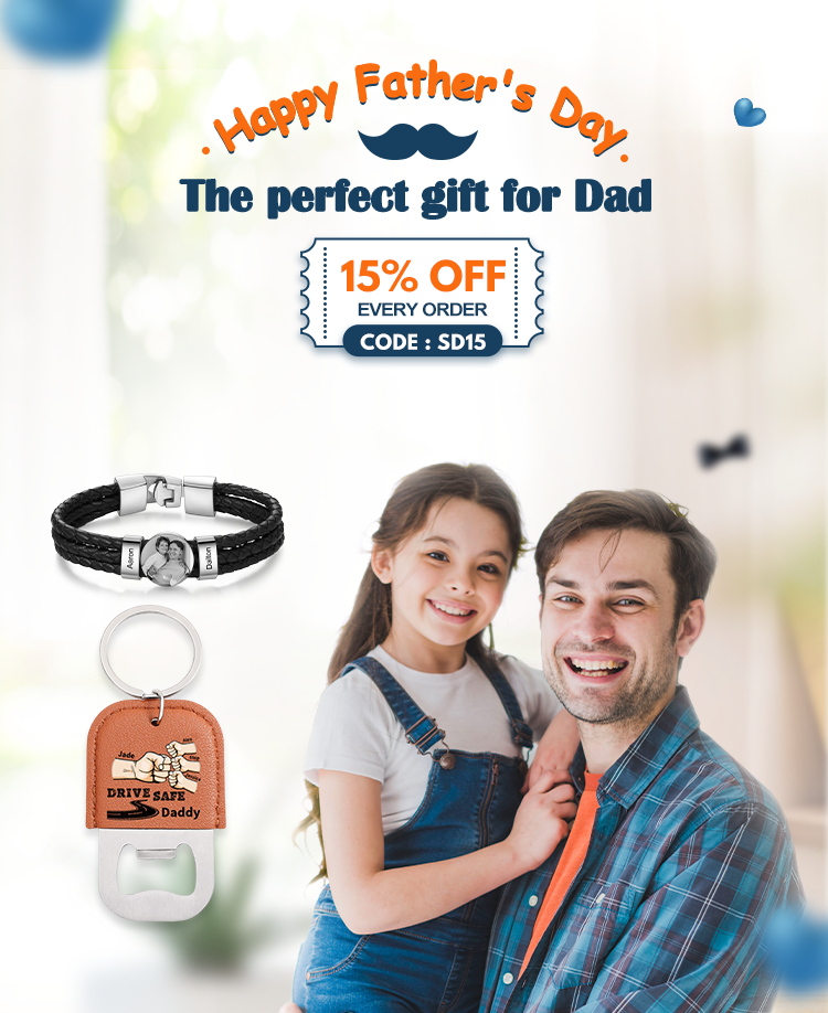 Giving a personalised bracelet for Father's Day is a symbol of the unique bond between father and child. Available in leather, stainless steel, or fabric, with engraved names or a significant date, each design tells a story. It's a touching and always fashionable gift idea that shows he's a dad like no other.