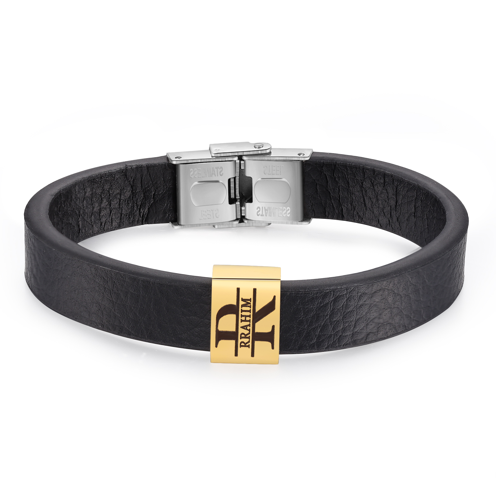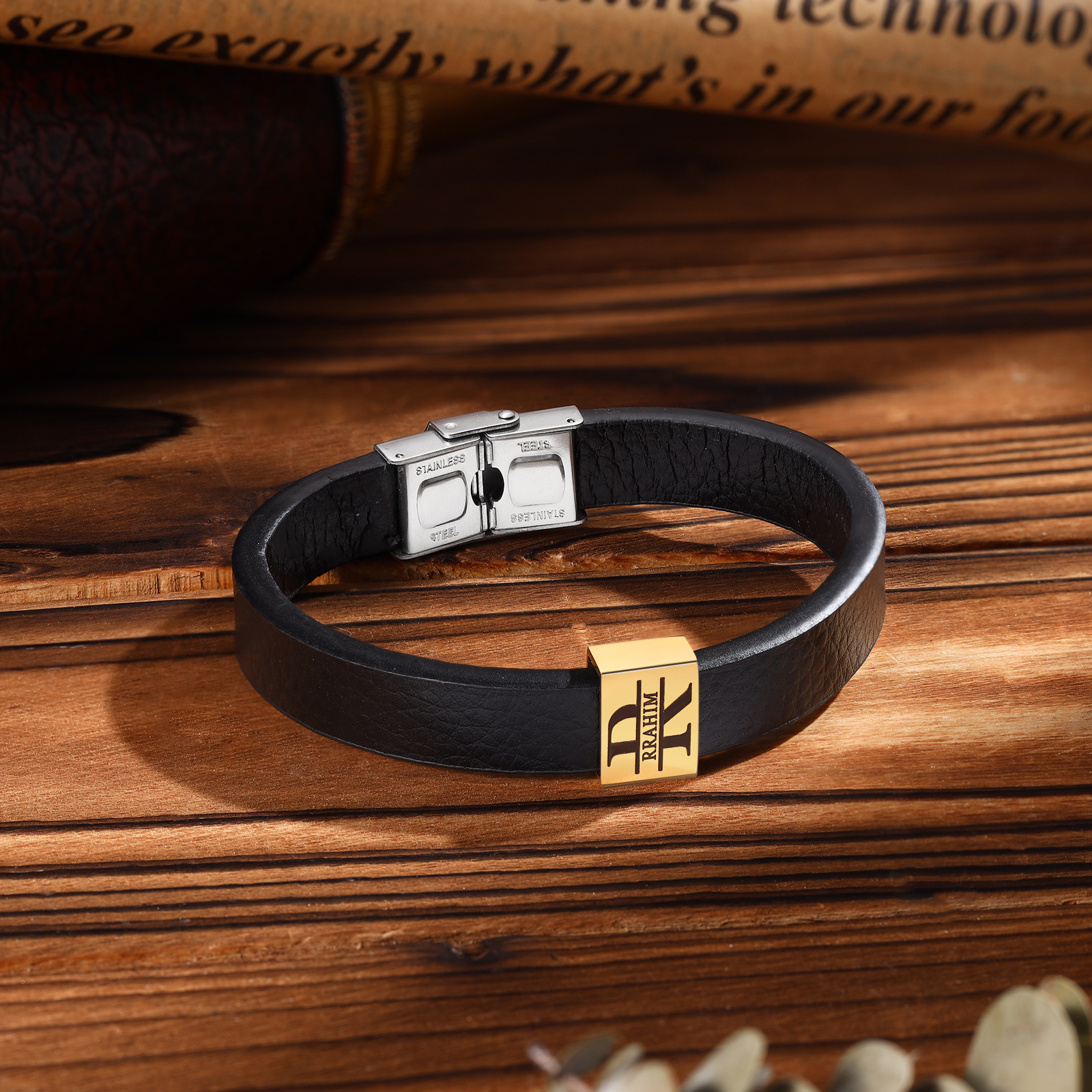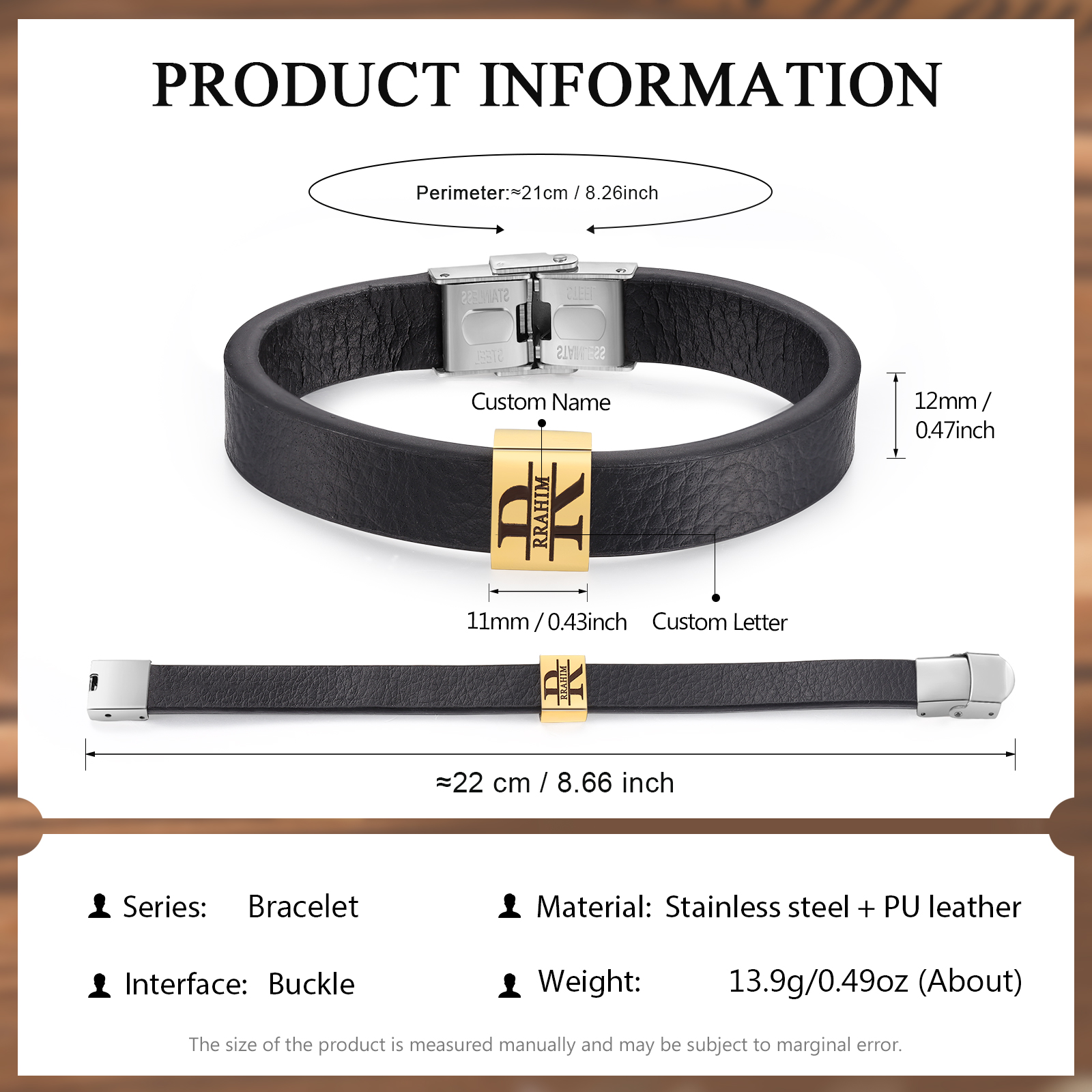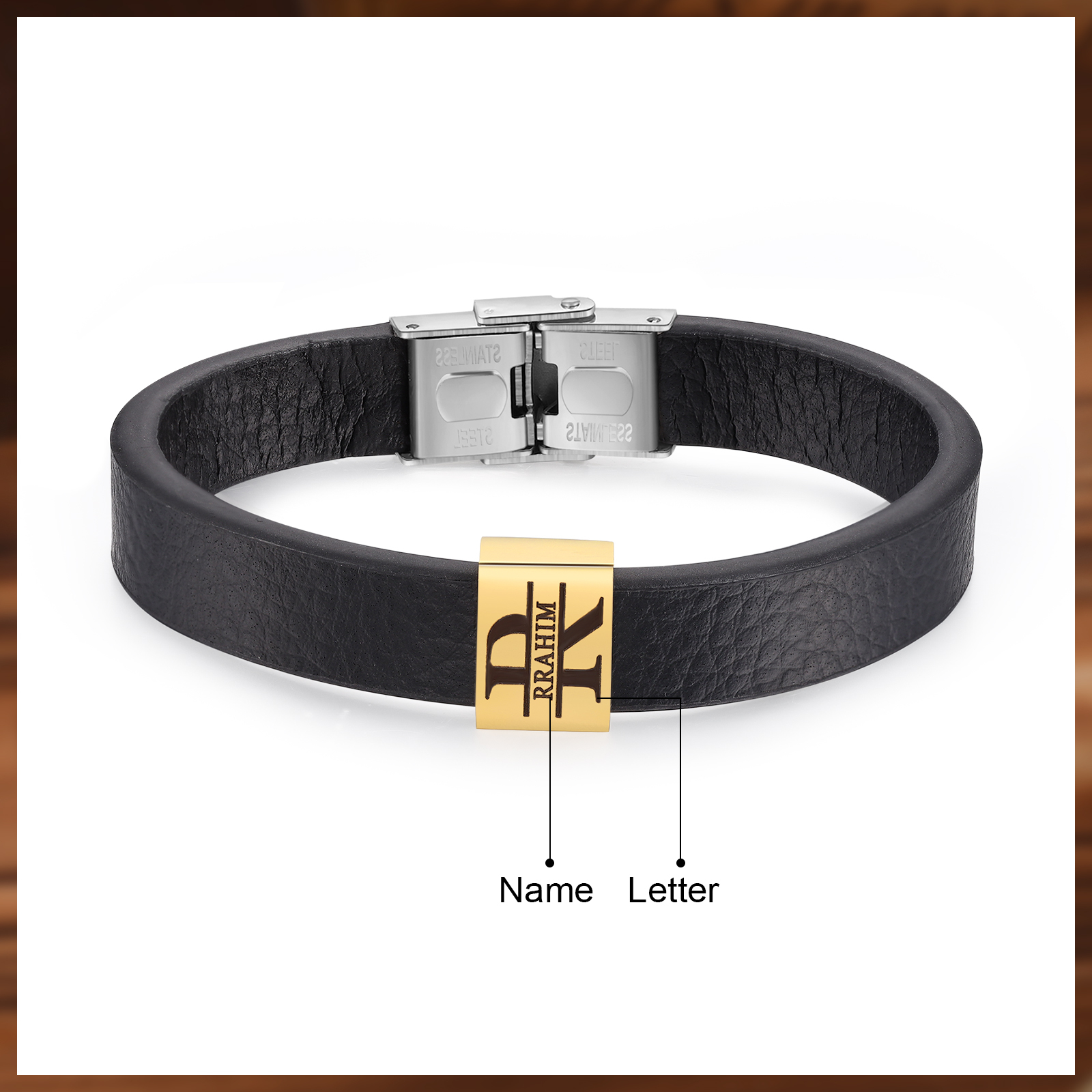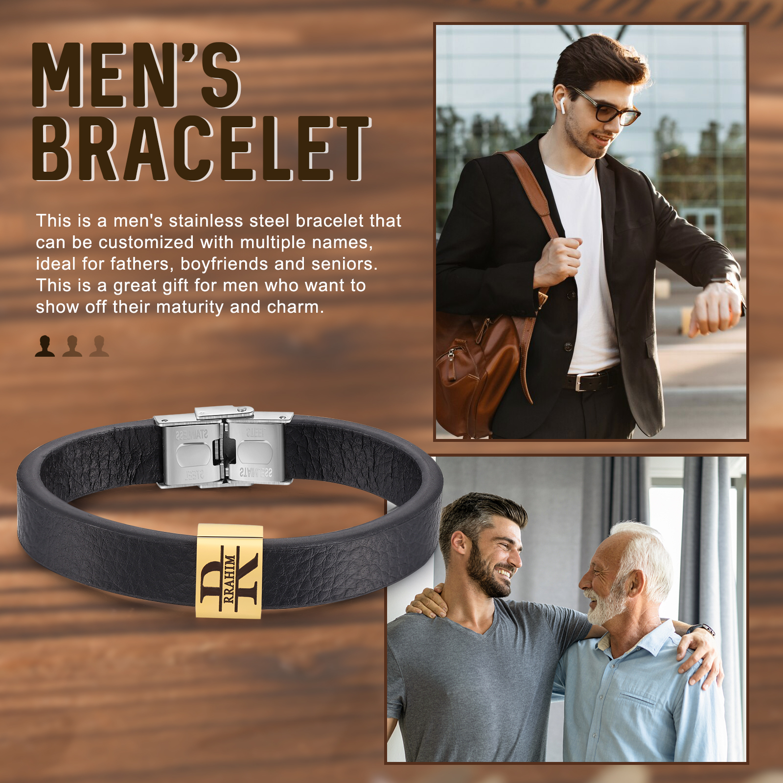 1 Name - Personalised Custom 1 Name Beads Leather Personalised Gift Mens Bracelet - Gift for Husband/Boyfriend