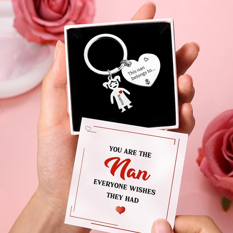 1 Name Personalised Kid Charm Keyring Heart Shaped Tag This Nan Belongs to Engrave Special Gift Set With Gift Box For Grandmother