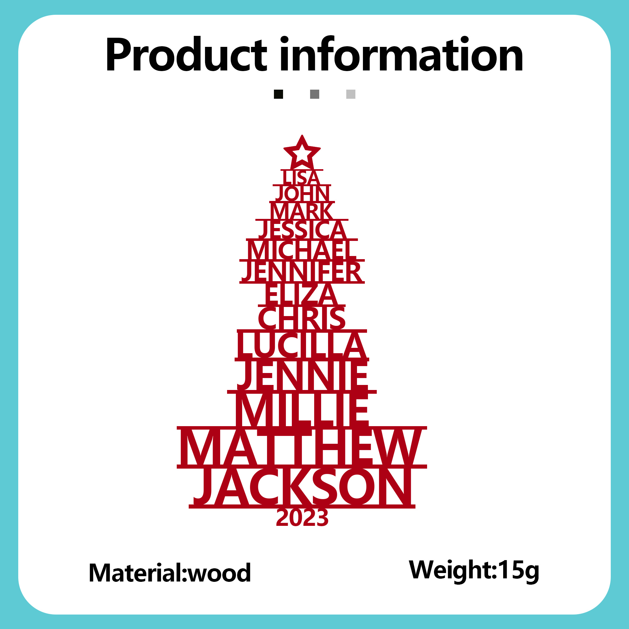 13 Names-Personalised Christmas Family Tree Wooden Hanging Name Ornament-Custom 13 Names Hanging Ornament Xmas Tree Decoration Gifts For Family