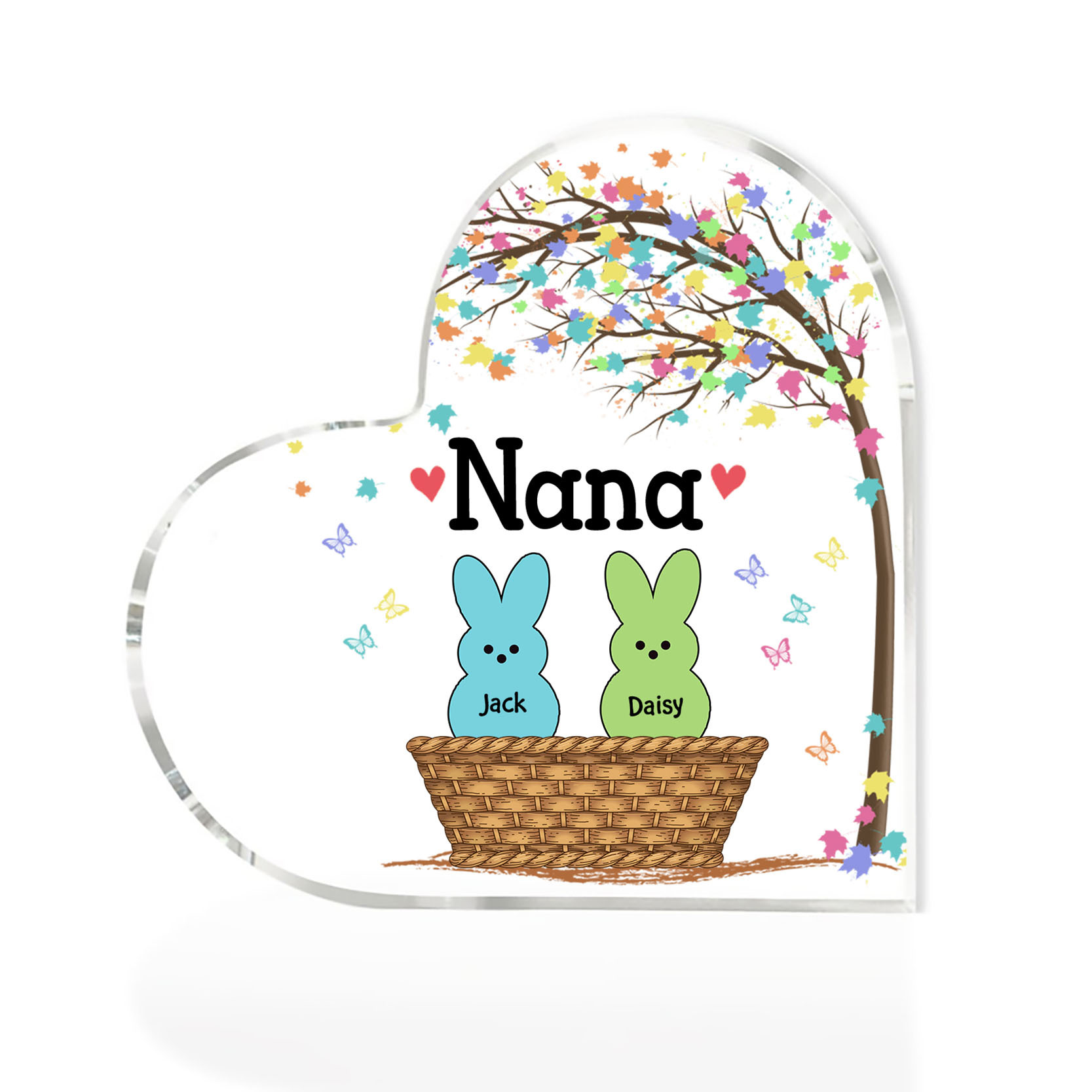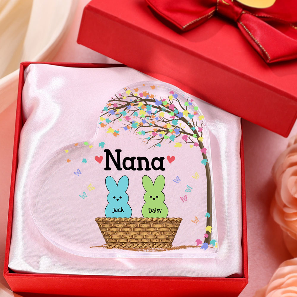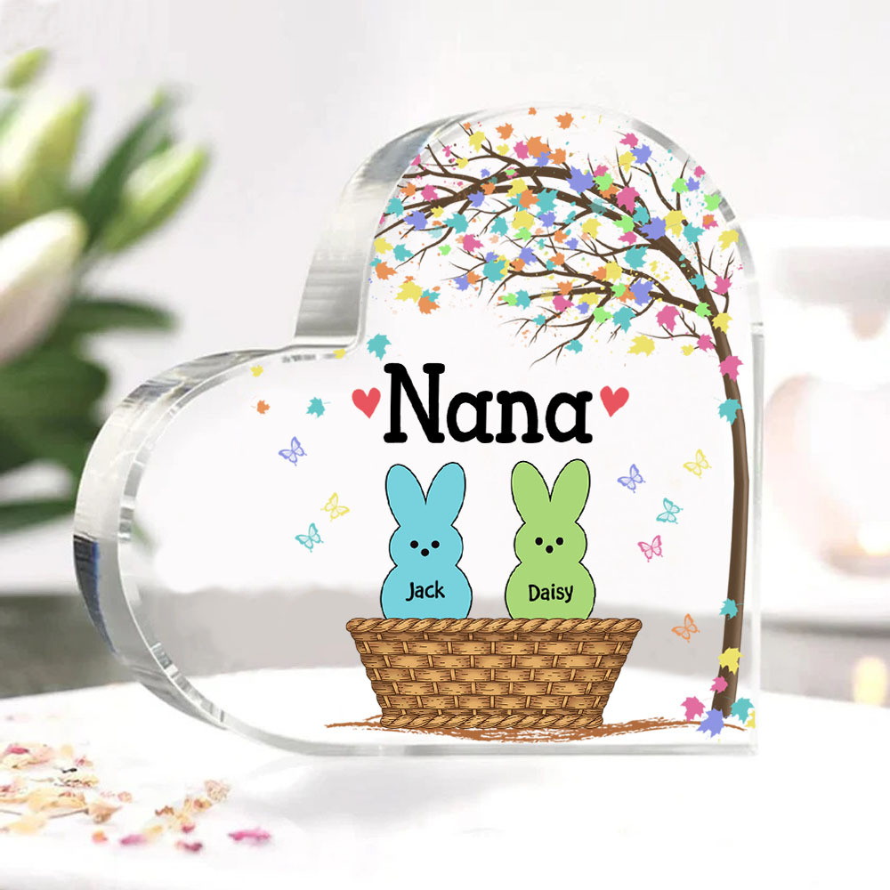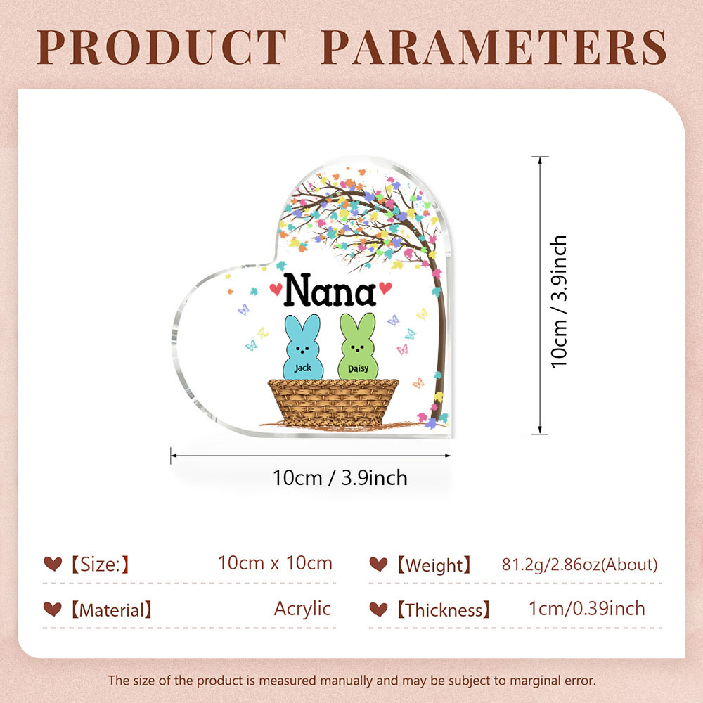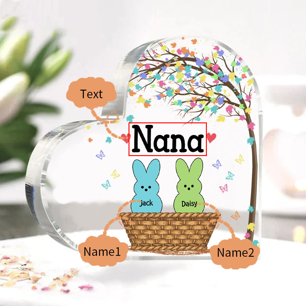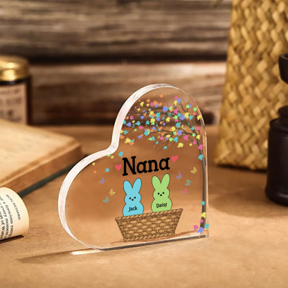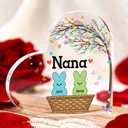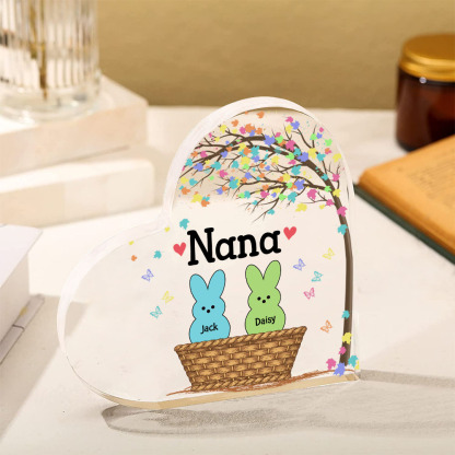 2 Names-Personalised Acrylic Heart Keepsake Custom Names Bunny Acrylic plaque Ornaments Gifts for Mum/Nan/Nana