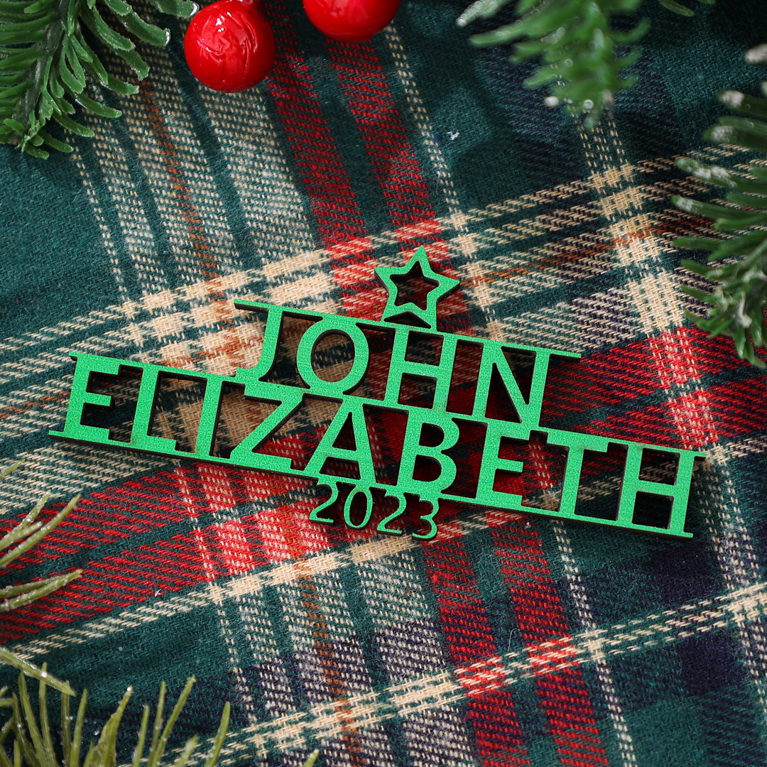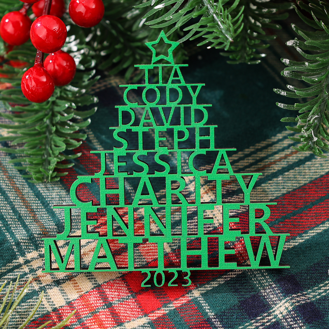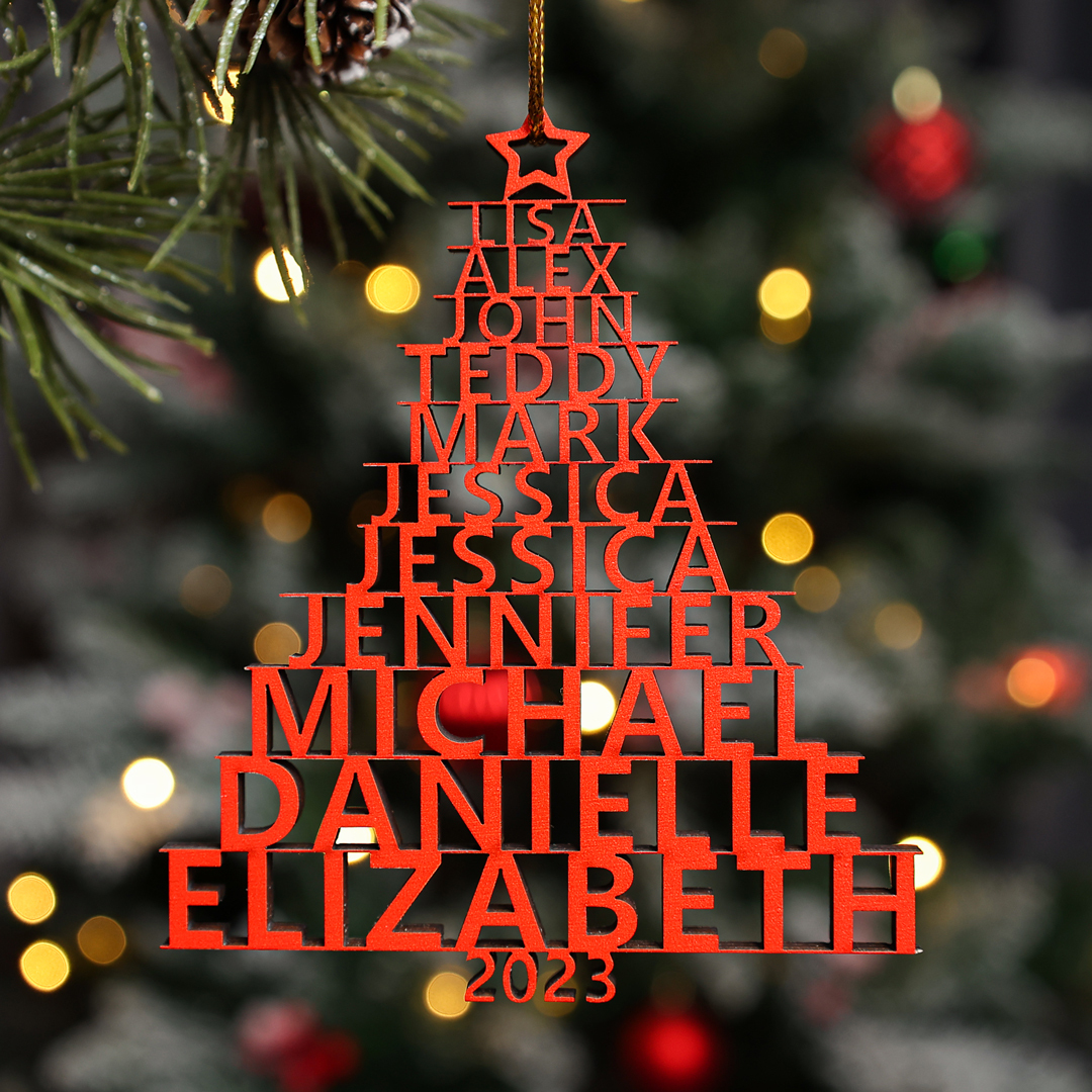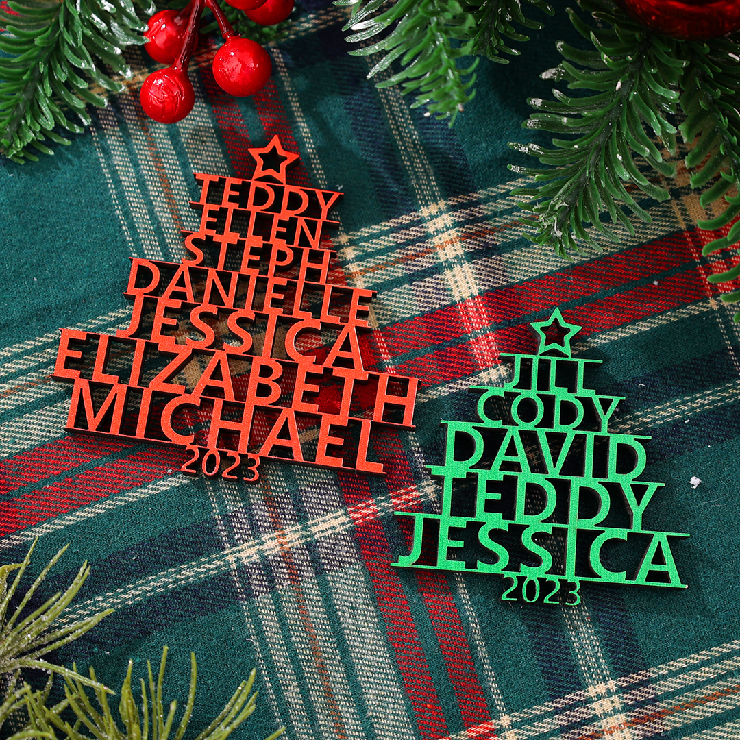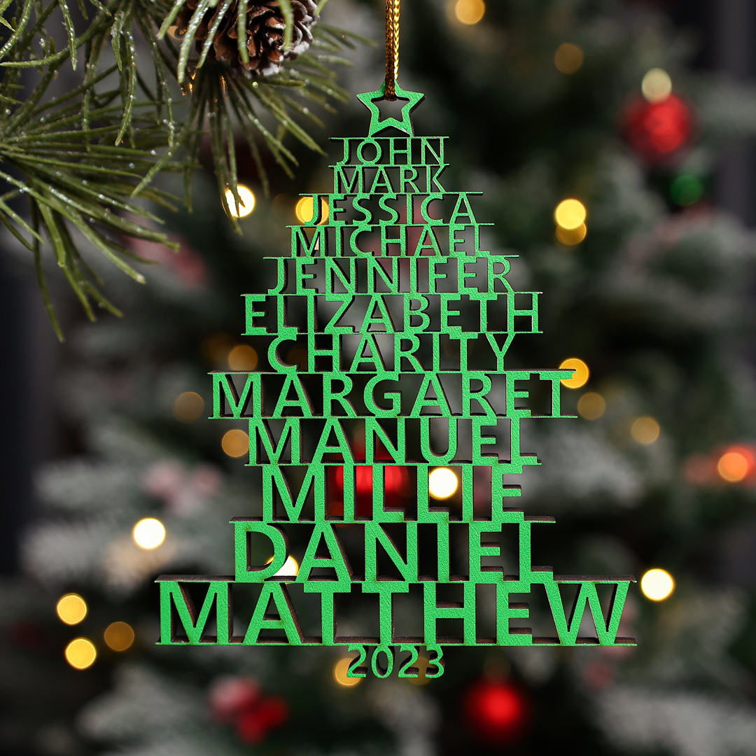 2 Names-Personalised Christmas Family Tree Wooden Hanging Name Ornament-Custom 2 Names Hanging Ornament Xmas Tree Decoration Gifts For Family
