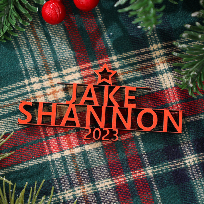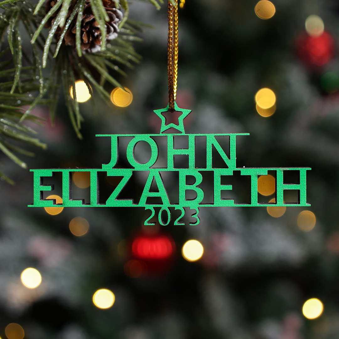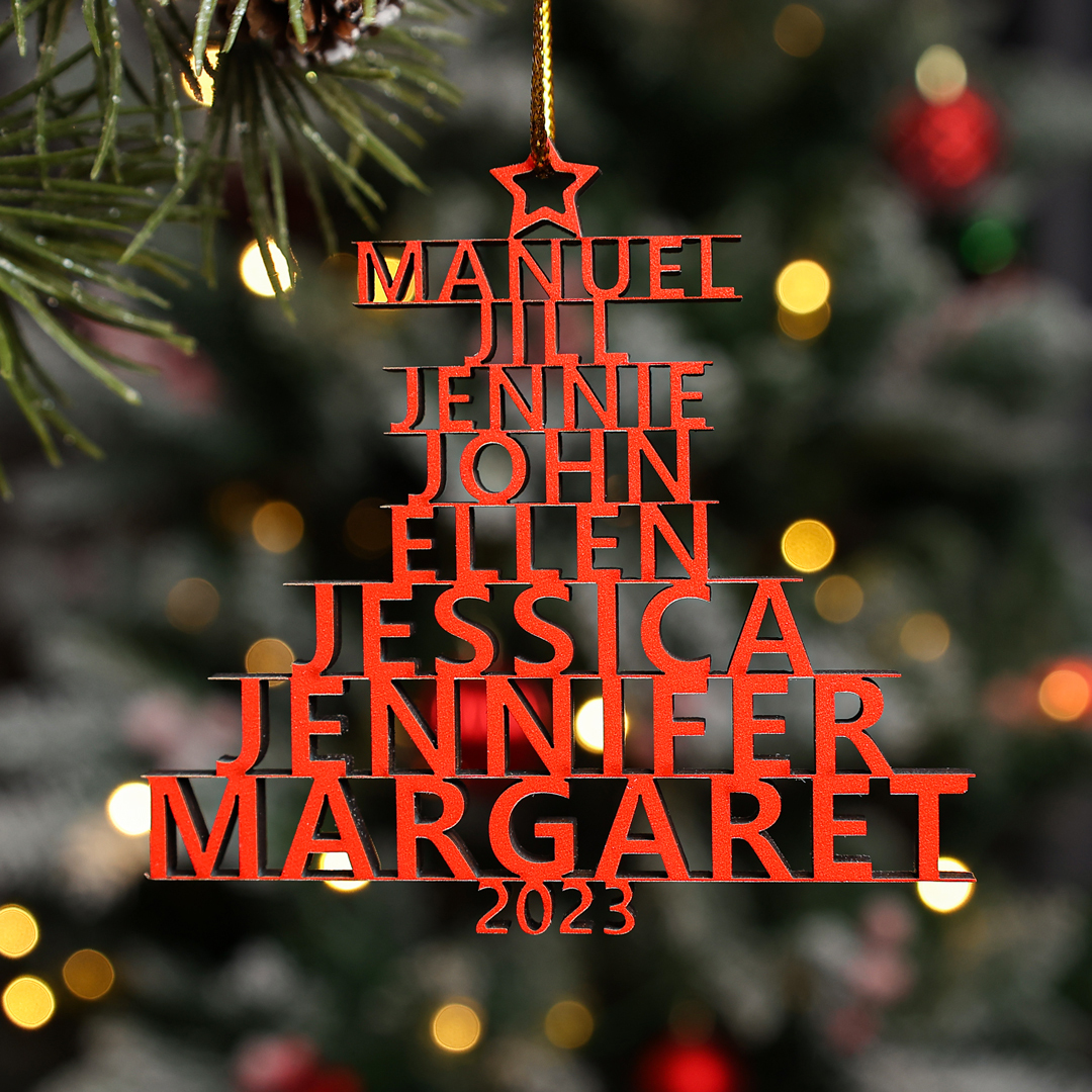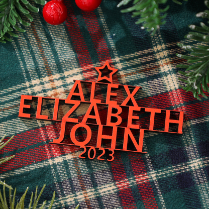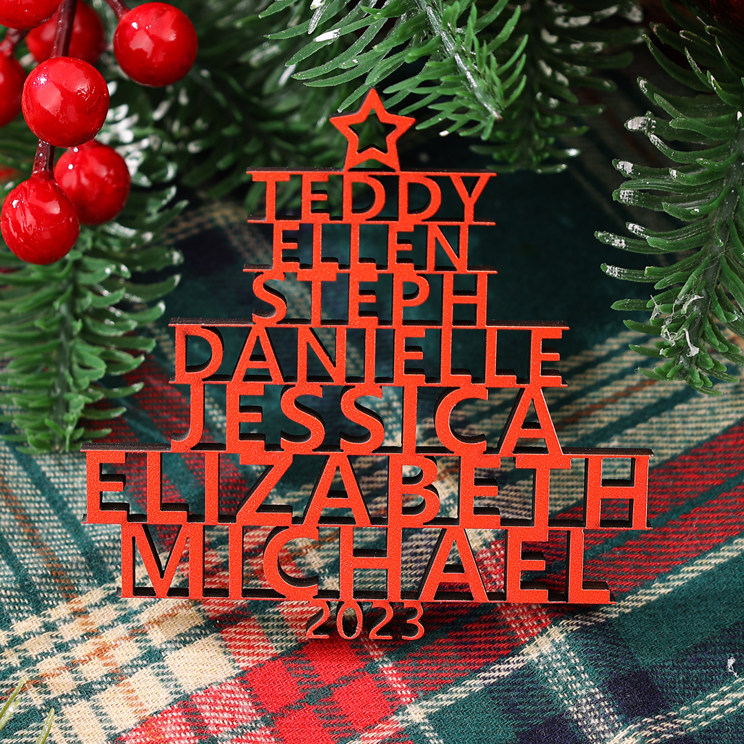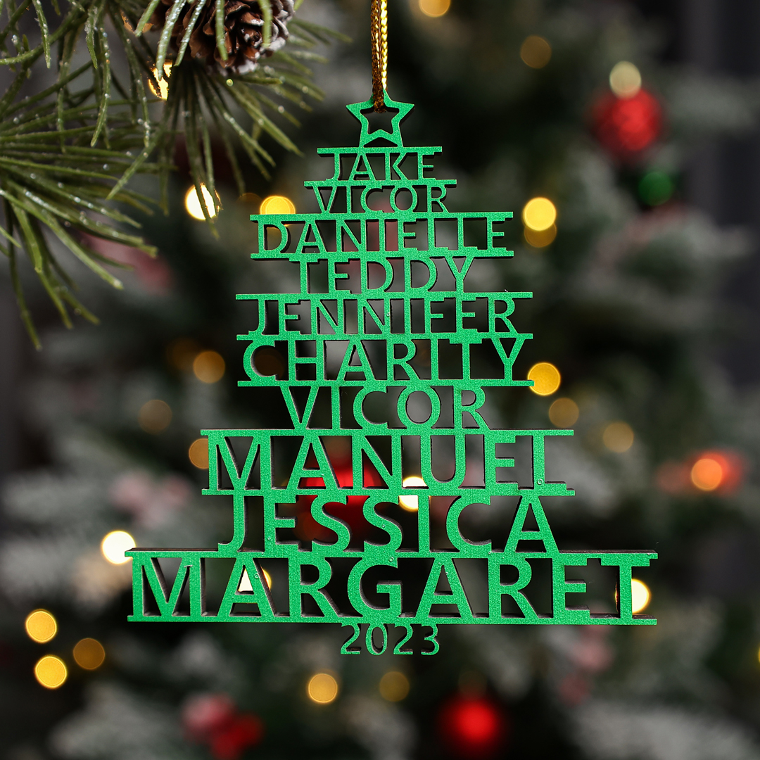 2 Names-Personalised Christmas Family Tree Wooden Hanging Name Ornament-Custom 2 Names Hanging Ornament Xmas Tree Decoration Gifts For Family