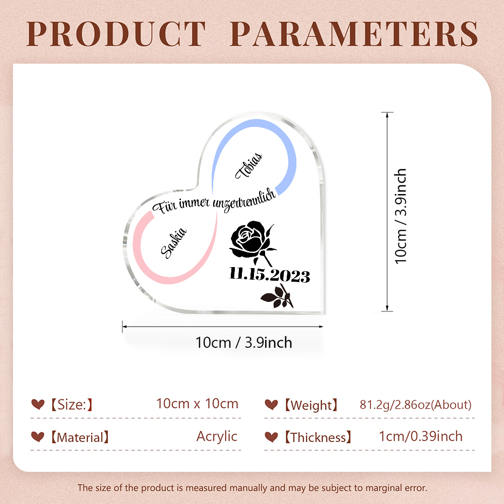 2 Names-Personalised Couple Acrylic Ornament Custom Acrylic Heart Keepsake Desktop Ornament for Couple