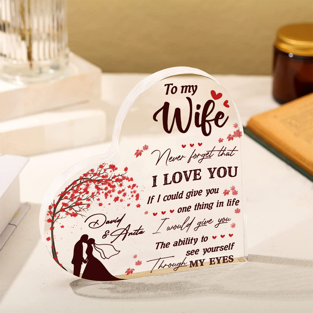 2 Names-Personalised Couple Acrylic Ornament Custom Acrylic Heart Keepsake Desktop Ornament for Couple