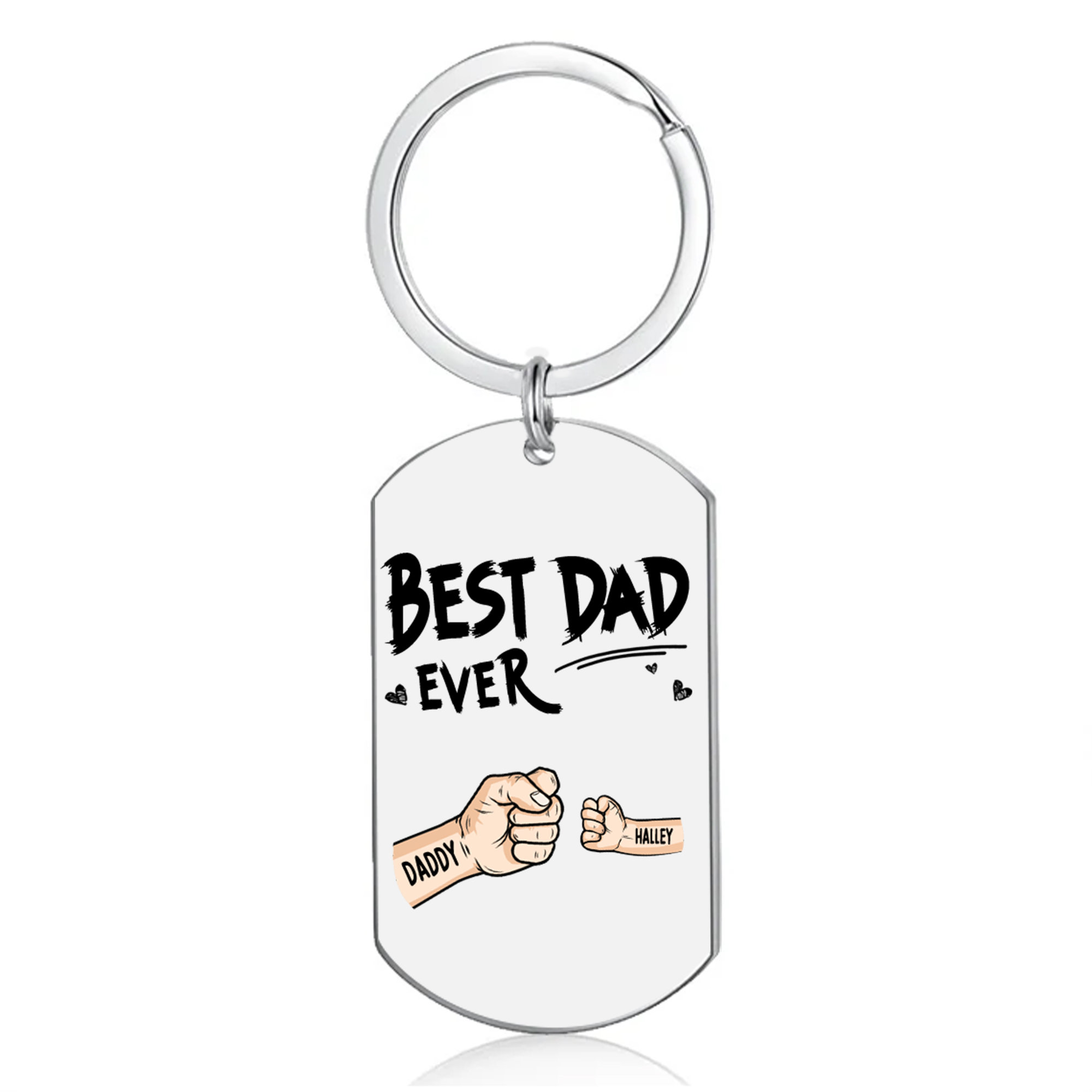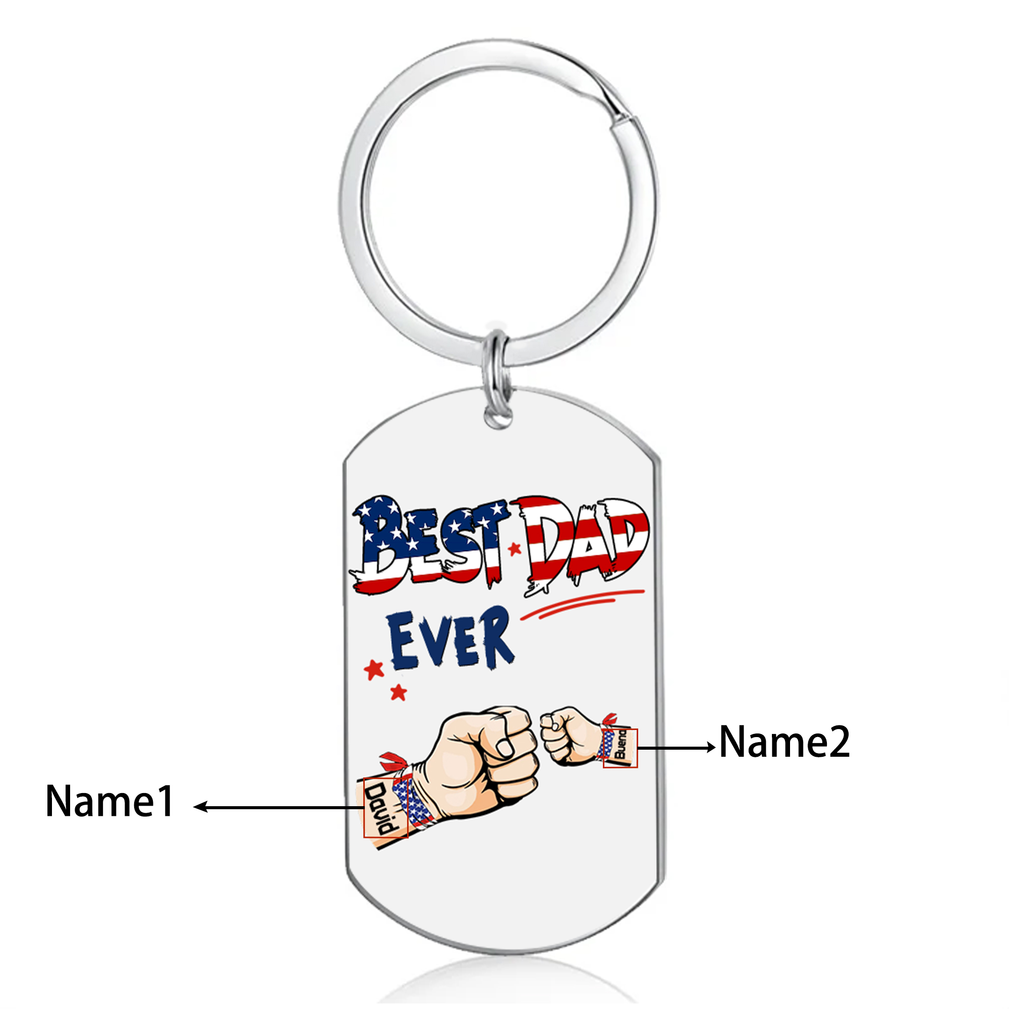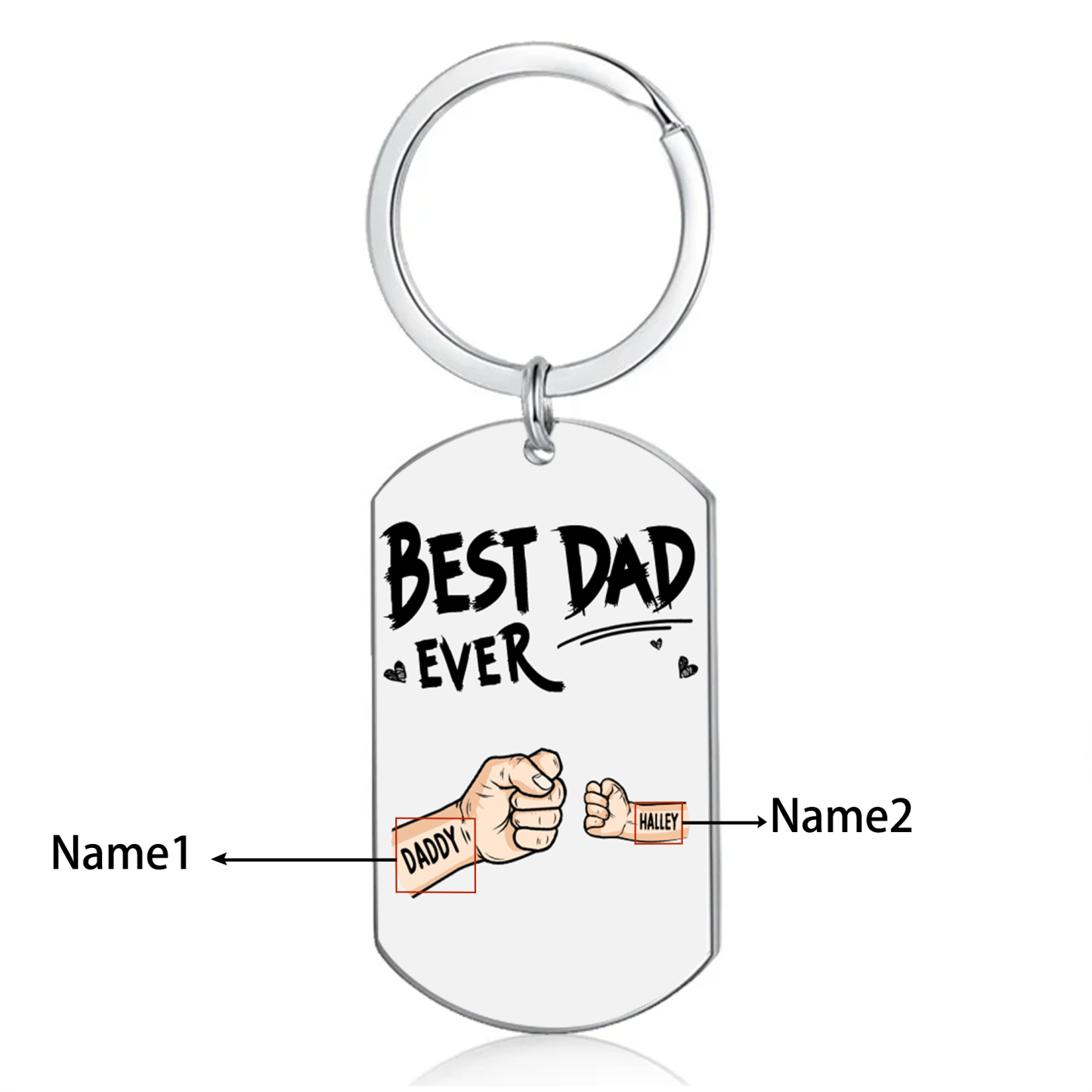 2 Names - Personalised Custom Fist Bump Keyring Gift "Best Dad Ever" Special Keyring Gift for Dad