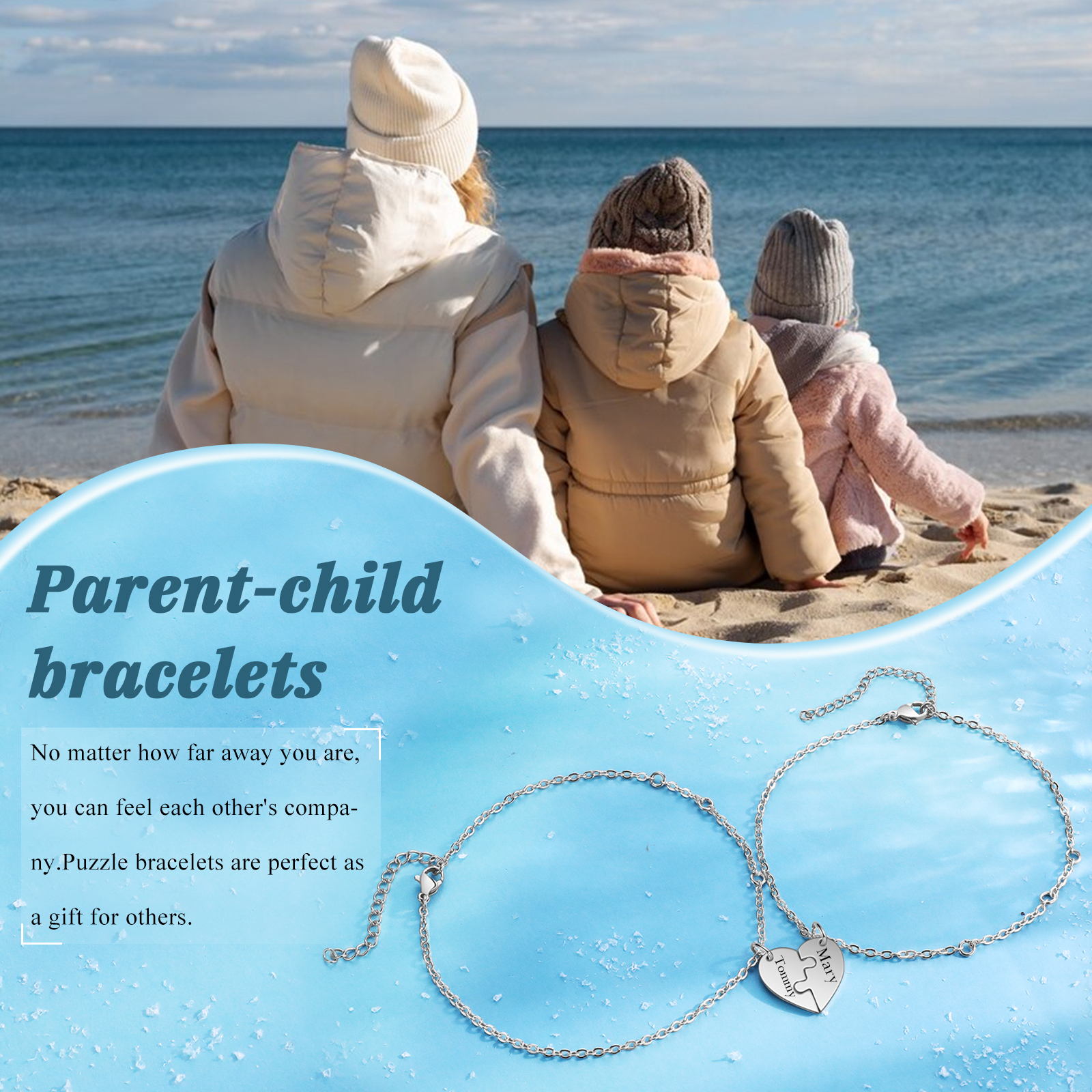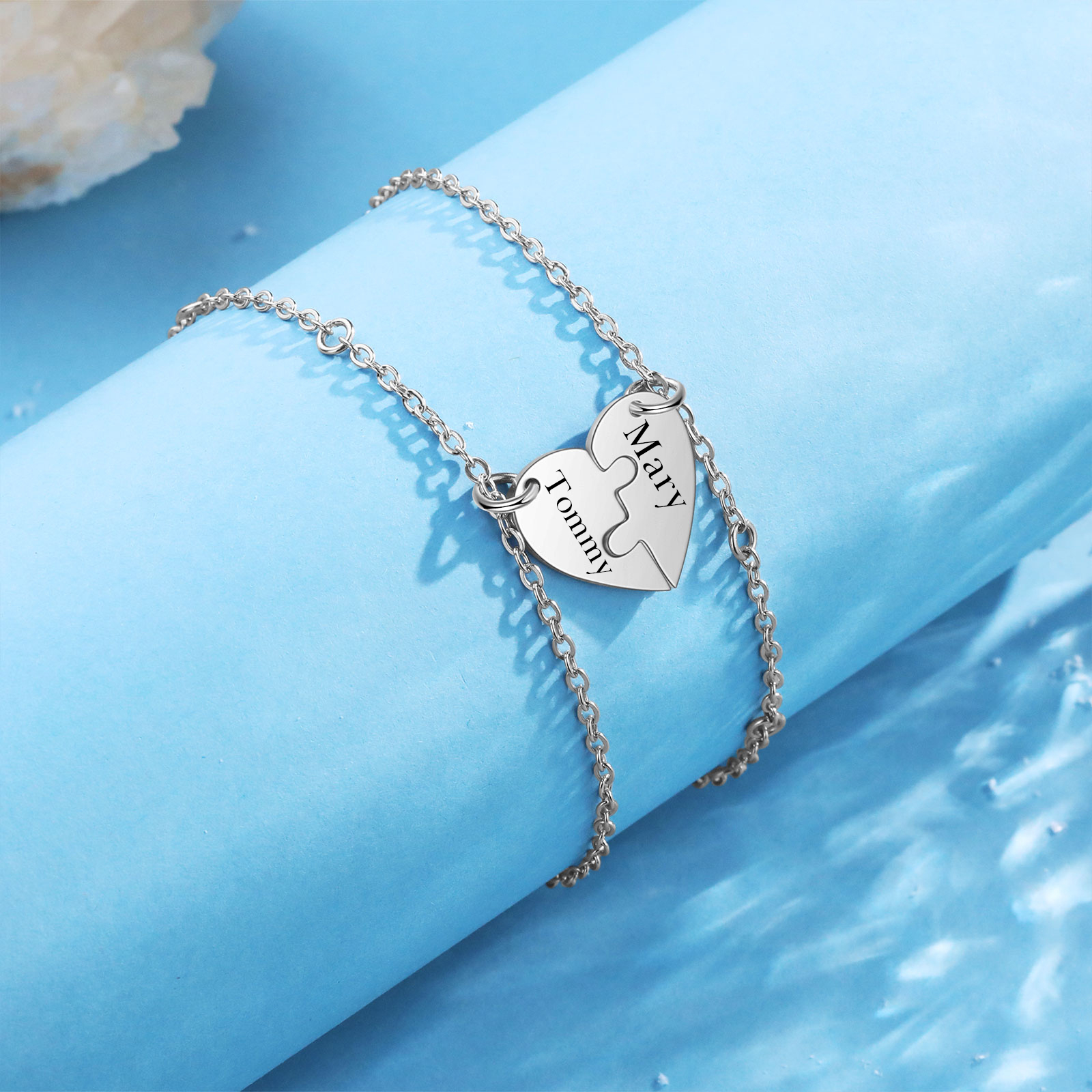 2 Names - Personalised Name Puzzle Bracelet Stainless Steel Love Bracelet Set for Family