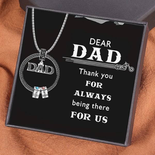 2 Names-Personalised Dad Necklace Gift Card Gift Box-Custom Dad Circle Men Necklace with Birthstones Engraved 2 Names Gifts For Father