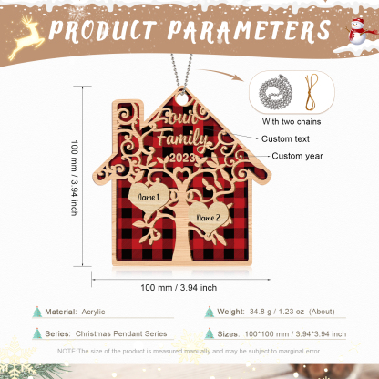 2 Names-Personalised Family Acrylic Christmas Xmas Tree Decoration Ornament-Custom 2 Names And Text Hanging Ornament Gifts For Family