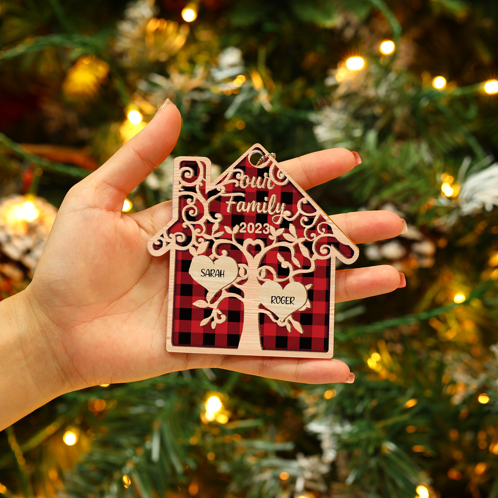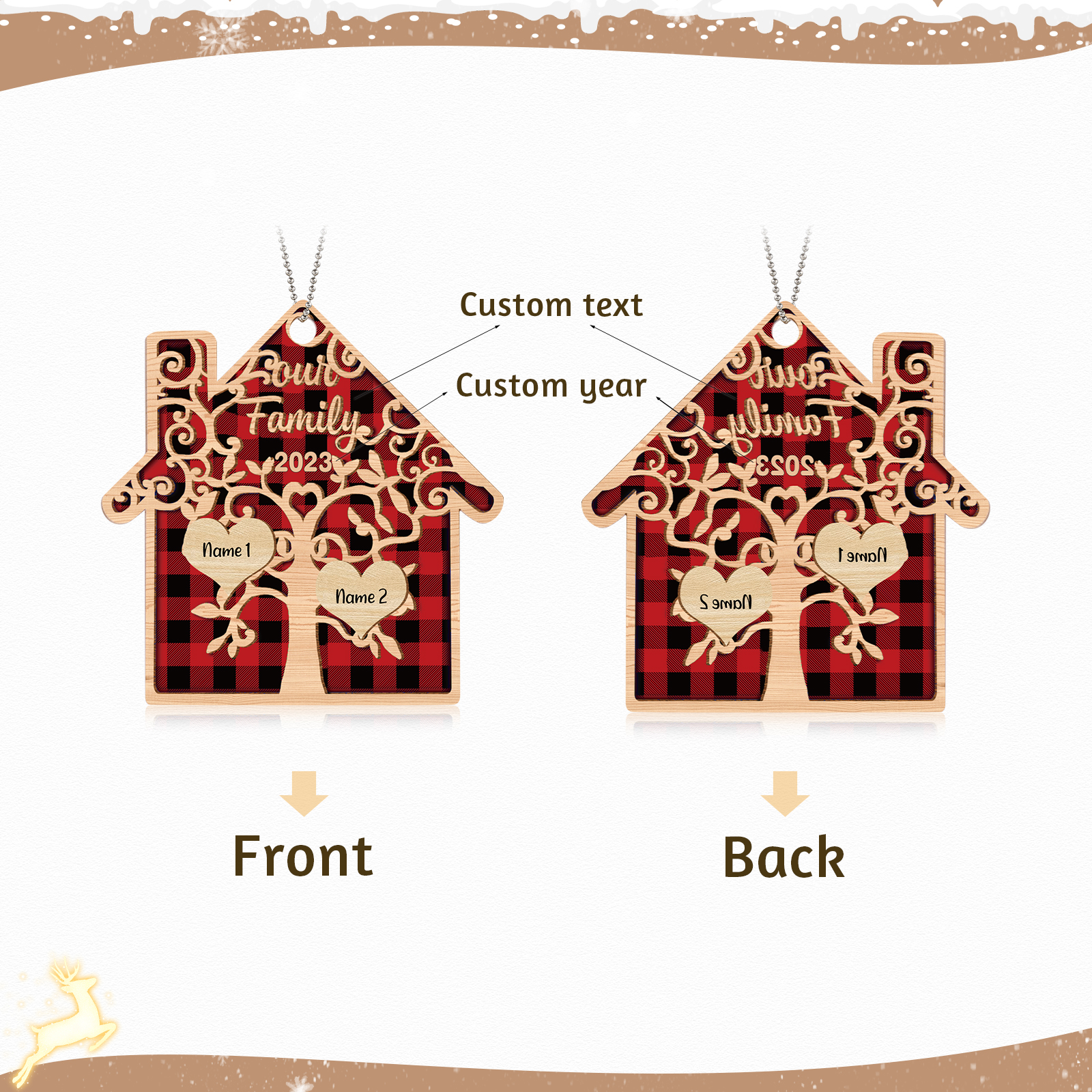 🎁Made of acrylic material, 2-8 names can be customized. The names of each family member are written on the tree, and the personalized text and year can be written on it. This is a great Christmas gift for the family.