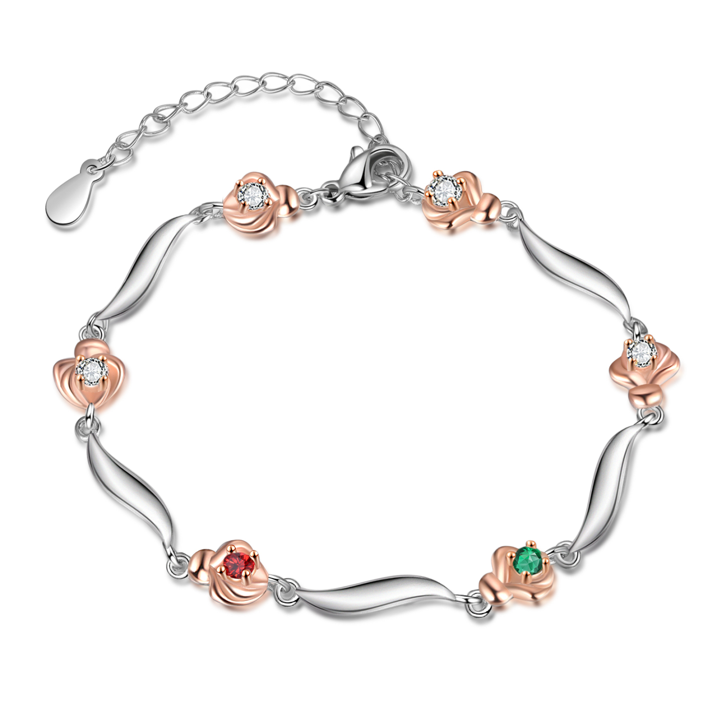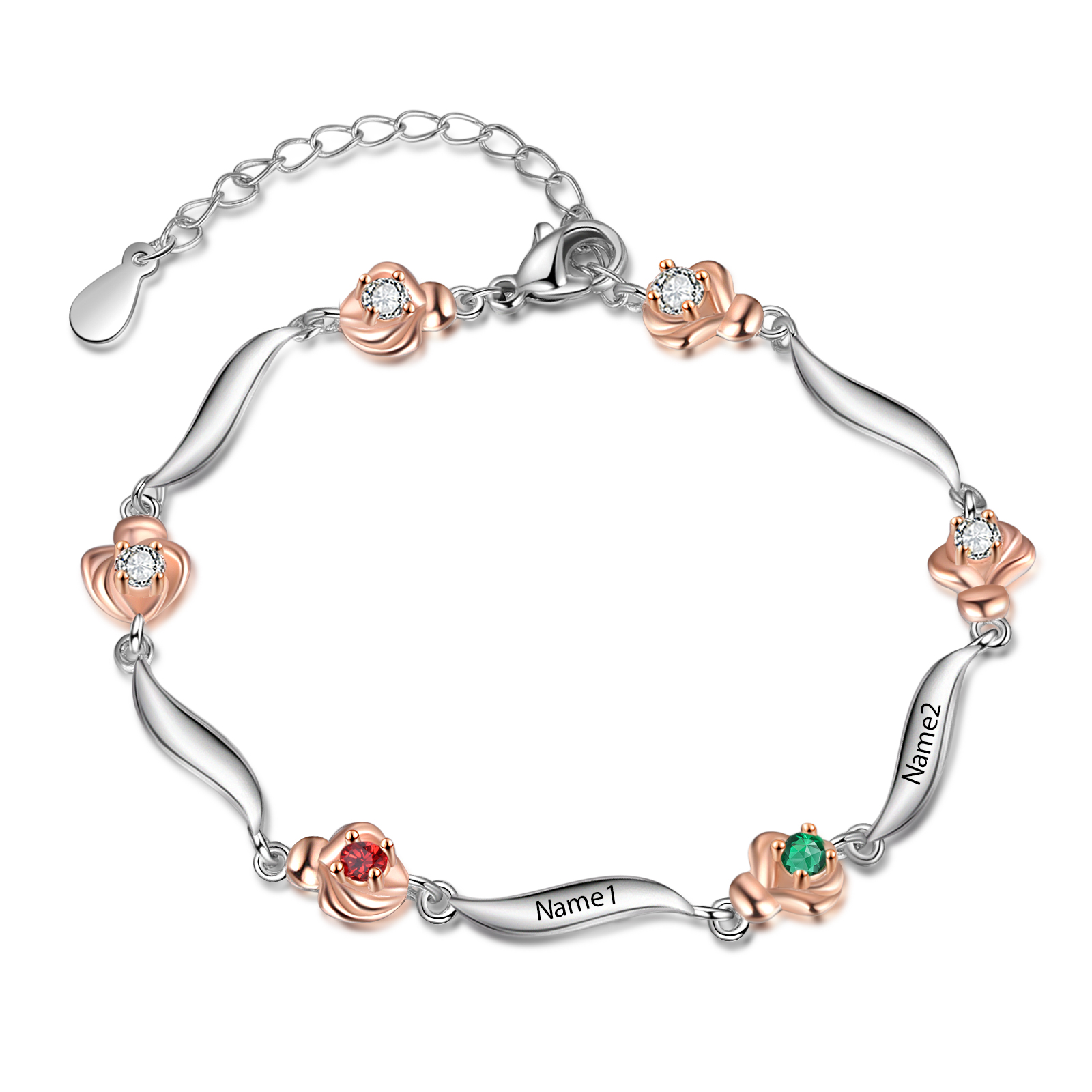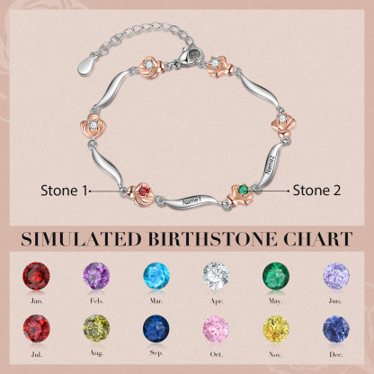 2 Names-Personalised Flower Bracelet With 2 Birthstones Custom Names Bracelet Gift For Women