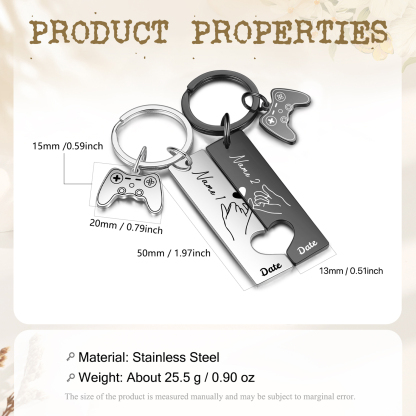2-Names Personalised Letter Puzzle Couple Keyring Engrave Letters And Date Matching Couple Gifts, Special Gift For Him/Her