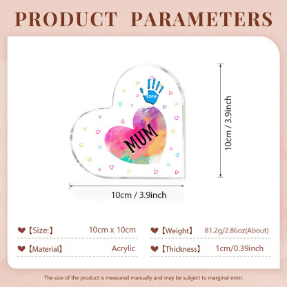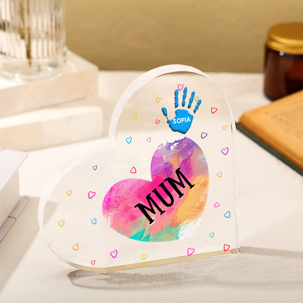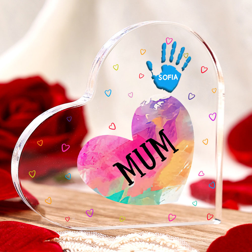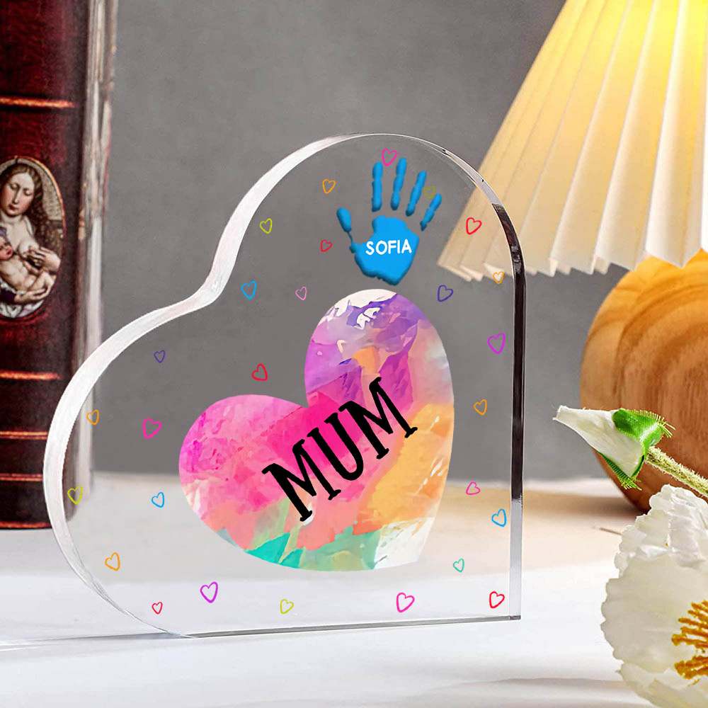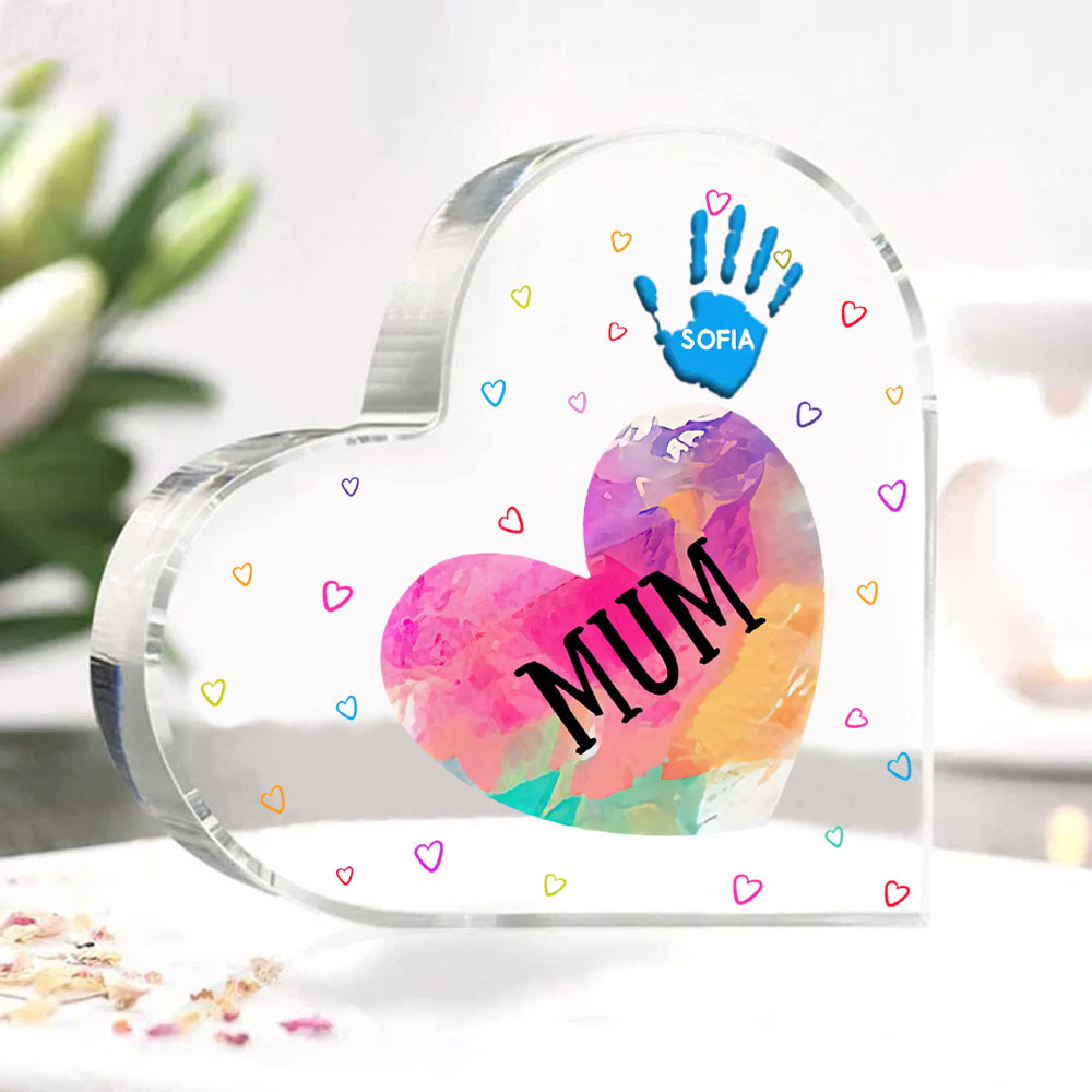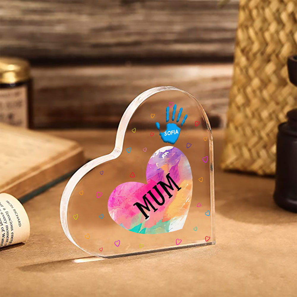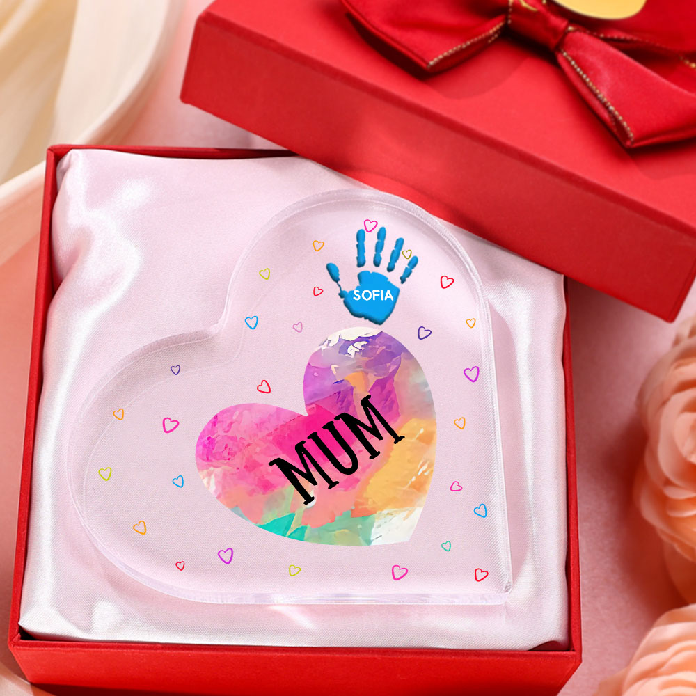 2 Names-Personalised Mum Acrylic Heart Keepsake Palm Ornaments Gifts Set With Gift Box for Grandma/Mother