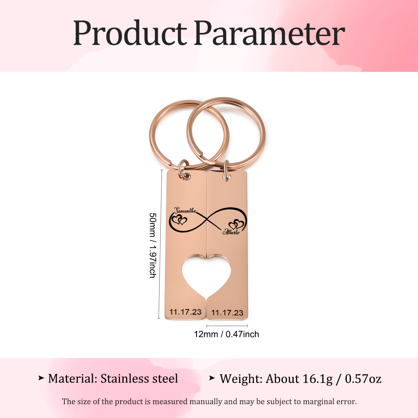 2-Names Personalised Puzzle Couple Keyring Engrave Letters And Date Matching Couple Gifts, Special Gift For Him/Her