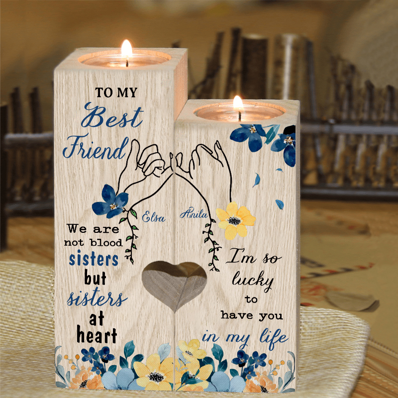 2 Names-Personalised To My Best Friend Flower Candlesticks-I'm So Lucky To Have You In My Life- Wooden Custom Candle Holder For Friends